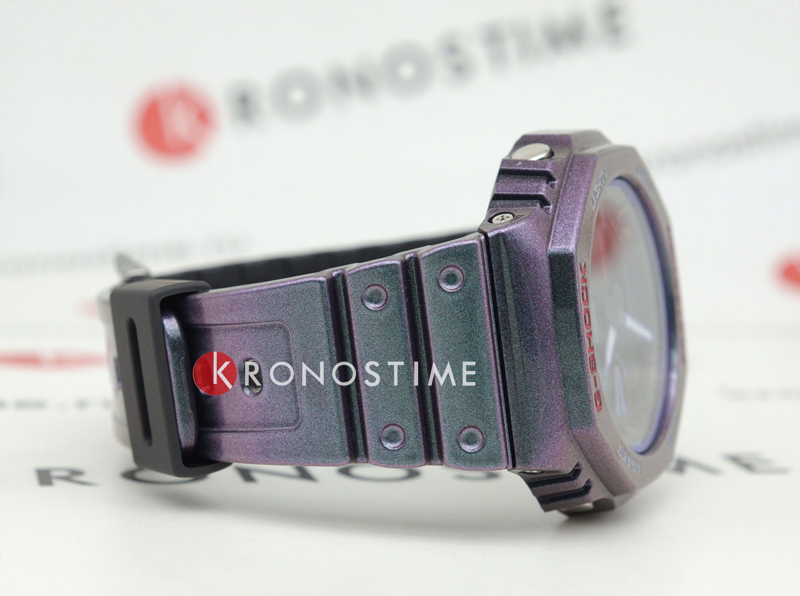 Японские мужские часы Casio G-Shock GA-2100AH-6A. Для тех, кто ставит перед собой более высокие цели в виртуальном мире — и в реальной жизни! Представляем G-SHOCK, вдохновленный решимостью, необходимой для достижения высочайших уровней компьютерных игр и выживания. Геймеры знают, что нужно для достижения высоких результатов в экшенах и стрелялках. Эти часы воссоздают захватывающий, постоянно меняющийся игровой мир с помощью поляризованной краски фиолетового и зеленого цветов, которая меняет цвет в зависимости от угла обзора. Такие детали, как оптический прицел для наведения прицела на цель, воплощены в оранжевых акцентах и графике на жидкокристаллическом экране, создавая игривый дизайн, который плавно перемещается между реальным и виртуальным мирами. Carbon Core GuardCarbon Core Guard Новейшая структура корпуса, разработанная Casio. Полиуретановая пластина дополнительно усилена карбоновыми вставками, что придаёт специальную защиту от механических повреждений. Карбон отличается лёгкостью и прочностью.. Минеральное стеклоМинеральное стеклоМинеральное стекло представляет собой искусственно выращенный минерал кварца. Такое стекло отличается особой устойчивостью к повреждениям и царапинам. Уступает по некоторым качествам сапфировому стеклу. устойчивое к появлению царапин, обладающее высокой прозрачностью. Светодиодная подсветкаСветодиодная подсветкаСветодиодная или LED-подсветка обеспечивает появление яркого холодного свечения за счёт LED-элементов - маленьких лампочек. Они потребляют минимальное количество энергии, чаще всего можно встретить 1 светодиод, в нижней части циферблата., настраиваемое послесвечение 1,5 или 3сек. Мировое время Мировое время Полезное часовое усложнение, отображающее время в основных городах и известных областях по всему миру, оно связано с часовыми поясами, удобно для путешественников и бизнесменов. 31 часовой пояс (48 городов + всемирное координированное время UTCUTCВсемирное кординационное время, не имеющее привязки к географическому положению Гринвича, основывается на атомном отсчёте времени. Регулировка времени осуществляется более точно, чем устаревшее GMT.
