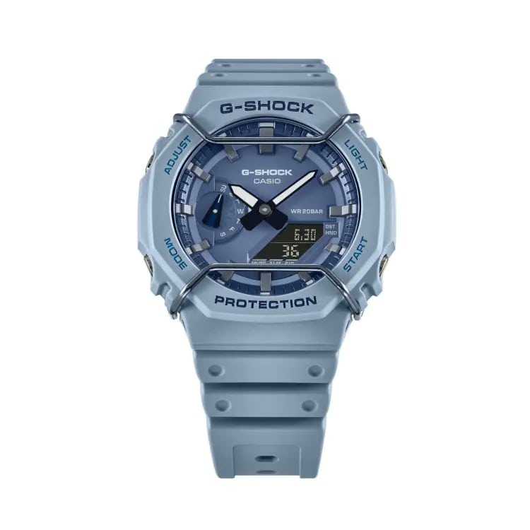Японские мужские часы-хронографХронографФункция позволяет измерять отрезки времени с особой точностью: часы, минуты, секунды. Верным признаком хронографа является наличие на циферблате 3 дополнительных окошек-счётчиков. Casio G-Shock G-SHOCK GA-2100PT-2A из коллекции G-Shock. Минеральное стеклоМинеральное стеклоМинеральное стекло представляет собой искусственно выращенный минерал кварца. Такое стекло отличается особой устойчивостью к повреждениям и царапинам. Уступает по некоторым качествам сапфировому стеклу. устойчивое к появлению царапин, обладающее высокой прозрачностью. Корпус часов изготовлен из полимерного материала. Светодиодная автоподсветка NeobriteПодсветка NeobriteИспользование светонакопительных составов на основе сульфида цинка или алюмината стронция, яркий свет можно наблюдать на протяжении 6-10 часов после «зарядки» часов около источника света. - при повороте часов в сторону лица подсветка дисплея осуществляется автоматически. Настраиваемое послесвечение 1,5 или 3сек. Цвет подсветки: оранжевый. Необритовое светонакопительное покрытие обеспечивает длительное послесвечение в темноте даже после кратковременного нахождения на свету. Ударопрочный корпусУдаропрочный корпусМеханизм заключён в корпус, выполненный из современных материалов, устойчивых к ударам, механическим повреждениям и падению с высоты: инновационный пластик, карбон, нержавеющая сталь, титан. защищает механизм от ударов и вибрации. Мировое времяМировое время Полезное часовое усложнение, отображающее время в основных городах и известных областях по всему миру, оно связано с часовыми поясами, удобно для путешественников и бизнесменов. – 48 городов (29 часовых поясов). СекундомерСекундомерСекундоме́р — прибор, способный измерять интервалы времени с точностью до долей секунды. с точностью измерения 1/100 секунды и измерением до 23 часов 59 минут 59,99 cек. ТаймерТаймерОтсчитывает секунды в обратном направлении в заданном интервале времени. обратного отсчета (диапазон времени 24 часа), автоматический календарь, 12/24 отображение времени. 5будильниковБудильникБуди́льник — часы, в заданный момент времени подающие звуковой, световой и/или в редких случаях другой сигнал., один с функцией Snooze, ежечасный сигнал. Стальная задняя крышка крепится на 4-х винтах. Класс водозащиты: 200 метров, позволит плавать, нырять и заниматься другими водными видами спорта. Ремешок из полимерного материала на стандартной застежке.