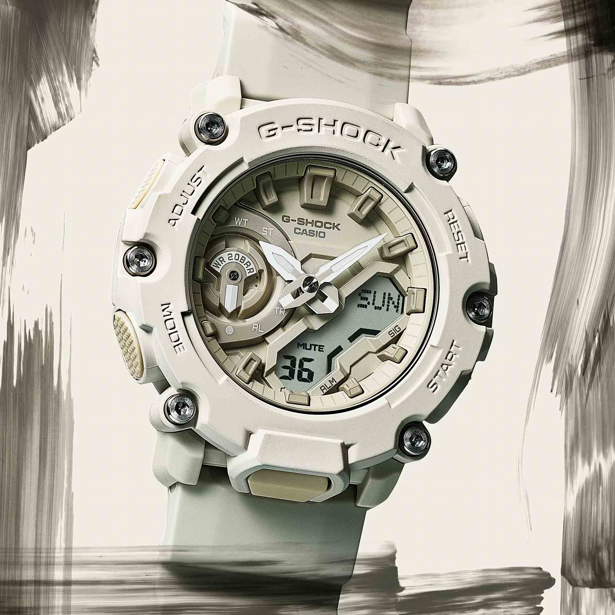 Мужские японские наручные часы Casio G-Shock GA-2200NC-7A, кварцевый механизм с высокой точностью. Класс водозащиты: 200 метров, позволит плавать, нырять и заниматься другими водными видами спорта. Структура Carbon Core GuardCarbon Core Guard Новейшая структура корпуса, разработанная Casio. Полиуретановая пластина дополнительно усилена карбоновыми вставками, что придаёт специальную защиту от механических повреждений. Карбон отличается лёгкостью и прочностью.. Крупный пластиковый ударопрочный корпусУдаропрочный корпусМеханизм заключён в корпус, выполненный из современных материалов, устойчивых к ударам, механическим повреждениям и падению с высоты: инновационный пластик, карбон, нержавеющая сталь, титан. с карбоновыми волокнами более прочный и, в то же время, более легкий. Этот же материал защищает внутренний модуль от повреждений и деформаций при ударах. Двойная светодиодная подсветкаСветодиодная подсветкаСветодиодная или LED-подсветка обеспечивает появление яркого холодного свечения за счёт LED-элементов - маленьких лампочек. Они потребляют минимальное количество энергии, чаще всего можно встретить 1 светодиод, в нижней части циферблата. позволяет видеть в полной темноте не только аналоговый циферблат, но и цифровой дисплей. Светонакопительная подсветка NeobriteПодсветка NeobriteИспользование светонакопительных составов на основе сульфида цинка или алюмината стронция, яркий свет можно наблюдать на протяжении 6-10 часов после «зарядки» часов около источника света. обеспечивает длительное послесвечение в темноте даже после кратковременного нахождения на свету. СекундомерСекундомерСекундоме́р — прибор, способный измерять интервалы времени с точностью до долей секунды. с двумя точностями показаний, таймерТаймерОтсчитывает секунды в обратном направлении в заданном интервале времени., мировое времяМировое время Полезное часовое усложнение, отображающее время в основных городах и известных областях по всему миру, оно связано с часовыми поясами, удобно для путешественников и бизнесменов. , включающее 31 часовой пояс и UTCUTCВсемирное кординационное время, не имеющее привязки к географическому положению Гринвича, основывается на атомном отсчёте времени. Регулировка времени осуществляется более точно, чем устаревшее GMT.