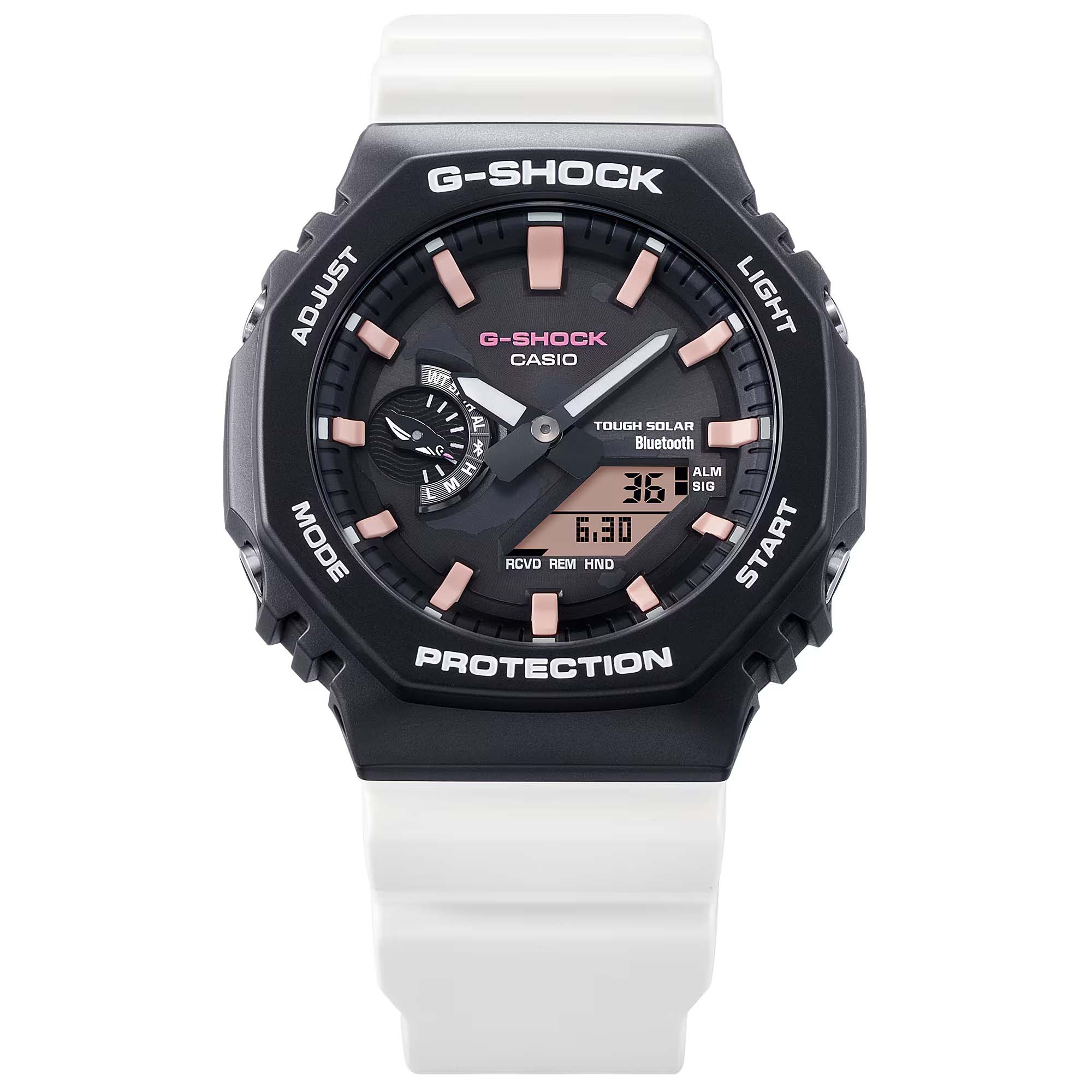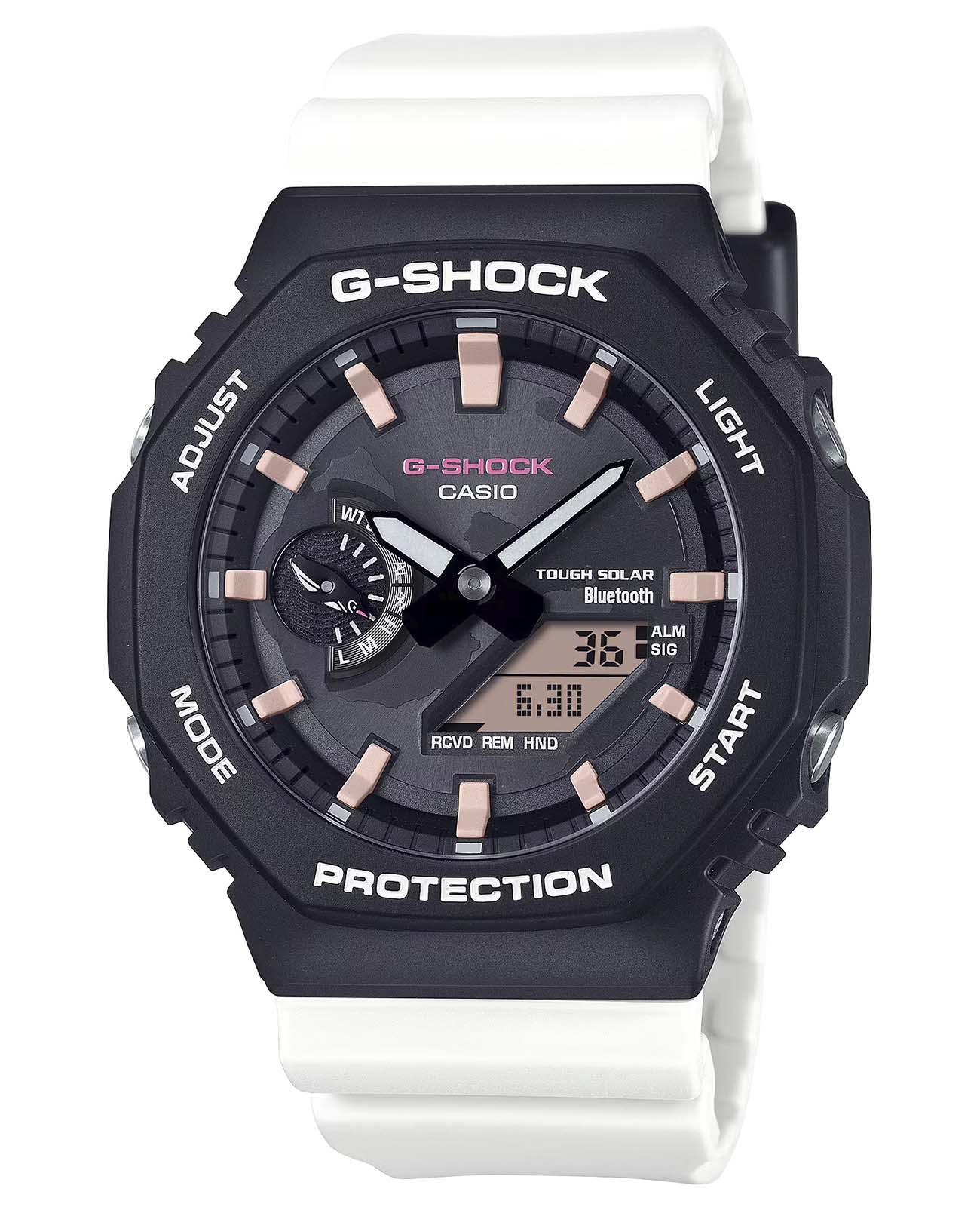 Мужские кварцевые часы Casio GA-B2100CD-1A7 — это лимитированная модель из коллекции G-Shock, посвящённая фауне Галапагосских островов. Модель выполнена в черном цвете с белым полимерным ремешком, а её размеры составляют 45,5x48,5 мм при толщине 11,9 мм. Корпус усилен углеродным волокном, изготовленным по технологии Carbon Core GuardCarbon Core Guard Новейшая структура корпуса, разработанная Casio. Полиуретановая пластина дополнительно усилена карбоновыми вставками, что придаёт специальную защиту от механических повреждений. Карбон отличается лёгкостью и прочностью., что делает его прочным и устойчивым к царапинам. Защиту механизма обеспечивает минеральное стеклоМинеральное стеклоМинеральное стекло представляет собой искусственно выращенный минерал кварца. Такое стекло отличается особой устойчивостью к повреждениям и царапинам. Уступает по некоторым качествам сапфировому стеклу., устойчивое к повреждениям. Стрелки покрыты необритовым люминесцентным напылениемПодсветка NeobriteИспользование светонакопительных составов на основе сульфида цинка или алюмината стронция, яркий свет можно наблюдать на протяжении 6-10 часов после «зарядки» часов около источника света., обеспечивающим длительное свечение даже после кратковременного нахождения на свету. Функциональность модели включает таймер обратного отсчёта, хронограф, секундомер с точностью 1/100 секунды, будильник, мировое время (48 городов, 31 часовой пояс), вечный календарь до 2099 года, функцию летнего времени (DST), сигнал начала часа, двойную диодную подсветку циферблата с возможностью выбора времени свечения (1,5 или 3 секунды), функцию выключения звука нажатия кнопок (Mute) и беспроводную технологию Bluetooth® со сверхнизким потреблением энергии для синхронизации со смартфоном. Индикатор режима на девяти часах выполнен в виде силуэта ныряющего пингвина — уникального вида пингвинов, обитающих на экваторе. Ремешок оснащён классической застёжкой, а водонепроницаемость позволяет использовать модель при плавании и других водных активностях без глубокого погружения. Эти часы станут универсальным аксессуаром для тех, кто ценит сочетание стиля, функциональности и надёжности — идеальный выбор для повседневной носки и активного образа жизни.