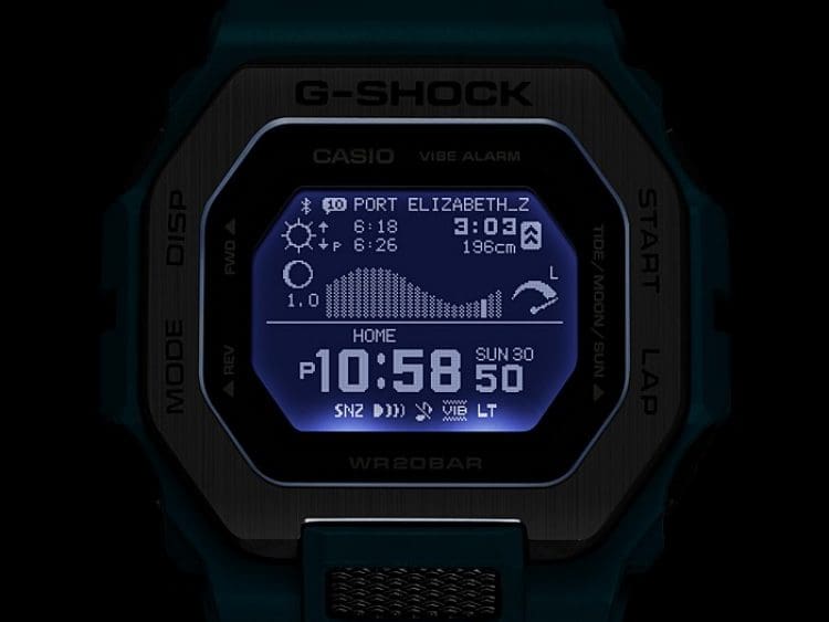 Японские мужские ударопрочные часы c функцией Bluetooth Casio G-Shock GBX-100-2, кварцевый механизм с высокой точностью. Класс водозащиты: 200 метров, позволит плавать, нырять и заниматься другими водными видами спорта. Корпус представляет собой сочетание полимера и металла, причем безель выполнен из нержавеющей стали с блестящей шершавой обработкой для достижения прочности и текстуры. Ударопрочный корпусУдаропрочный корпусМеханизм заключён в корпус, выполненный из современных материалов, устойчивых к ударам, механическим повреждениям и падению с высоты: инновационный пластик, карбон, нержавеющая сталь, титан. защищает механизм от ударов и вибрации. Долговечный и экономичный матричный дисплей MIP LCD высокой четкости улучшает читаемость и восприятие любых данных. Отображаемые графики приливов и отливов, данные о Луне, время и уровень прилива/отлива, время восхода/заката солнца. Фирменная экономичная светодиодная подсветкаСветодиодная подсветкаСветодиодная или LED-подсветка обеспечивает появление яркого холодного свечения за счёт LED-элементов - маленьких лампочек. Они потребляют минимальное количество энергии, чаще всего можно встретить 1 светодиод, в нижней части циферблата. Super Illuminator с функцией Afterglow. Базовые функции: 12-ти и 24-х часовой формат времени, секундомерСекундомерСекундоме́р — прибор, способный измерять интервалы времени с точностью до долей секунды. с точностью показаний 1 сек и временем измерения 100 ч, сплит-хронографСплит-хронографИспользуется для измерения продолжительности нескольких временных отрезков, начинающихся одновременно, а заканчивающихся в разное время., возможность установить 5 таймеров, таймер обратного отсчета от 1 сек до 1 ч с автоповтором, мировое времяМировое время Полезное часовое усложнение, отображающее время в основных городах и известных областях по всему миру, оно связано с часовыми поясами, удобно для путешественников и бизнесменов. – 38 городов (38 часовых поясов), всемирное координированное время (UTCUTCВсемирное кординационное время, не имеющее привязки к географическому положению Гринвича, основывается на атомном отсчёте времени. Регулировка времени осуществляется более точно, чем устаревшее GMT.