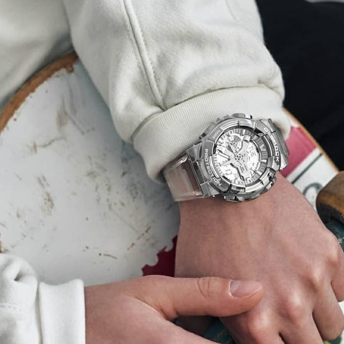 Японские мужские часы-хронографХронографФункция позволяет измерять отрезки времени с особой точностью: часы, минуты, секунды. Верным признаком хронографа является наличие на циферблате 3 дополнительных окошек-счётчиков. Casio G-Shock GM-110SCM-1A из коллекции G-Shock. Противоударный пластиковый корпус с карбоновыми волокнами более прочный и, в то же время, более легкий. Минеральное стеклоМинеральное стеклоМинеральное стекло представляет собой искусственно выращенный минерал кварца. Такое стекло отличается особой устойчивостью к повреждениям и царапинам. Уступает по некоторым качествам сапфировому стеклу. устойчивое к появлению царапин, обладающее высокой прозрачностью. Ударопрочный корпусУдаропрочный корпусМеханизм заключён в корпус, выполненный из современных материалов, устойчивых к ударам, механическим повреждениям и падению с высоты: инновационный пластик, карбон, нержавеющая сталь, титан. защищает механизм от ударов и вибрации. Светодиодная подсветкаСветодиодная подсветкаСветодиодная или LED-подсветка обеспечивает появление яркого холодного свечения за счёт LED-элементов - маленьких лампочек. Они потребляют минимальное количество энергии, чаще всего можно встретить 1 светодиод, в нижней части циферблата. освещает весь циферблат. Мировое времяМировое время Полезное часовое усложнение, отображающее время в основных городах и известных областях по всему миру, оно связано с часовыми поясами, удобно для путешественников и бизнесменов. – 48 городов (29 часовых поясов). СекундомерСекундомерСекундоме́р — прибор, способный измерять интервалы времени с точностью до долей секунды. с точностью измерения 1/100 секунды и измерением до 23 часов 59 минут 59,99 cек. ТаймерТаймерОтсчитывает секунды в обратном направлении в заданном интервале времени. обратного отсчета (диапазон времени 24 часа), автоматический календарь, 12/24 отображение времени. 5 будильниковБудильникБуди́льник — часы, в заданный момент времени подающие звуковой, световой и/или в редких случаях другой сигнал., один с функцией Snooze, ежечасный сигнал. Класс водозащиты: 200 метров, позволит плавать, нырять и заниматься другими водными видами спорта. Ремешок из полимерного материала на стандартной застежке.