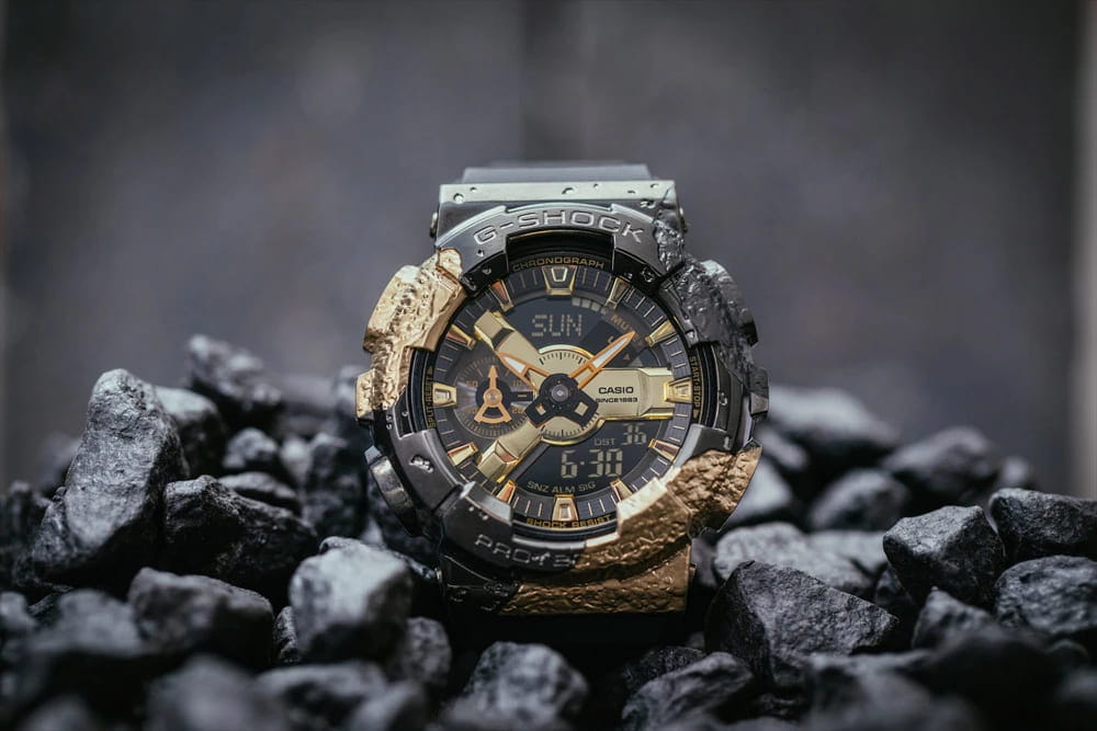 Японские мужские часы-хронографХронографФункция позволяет измерять отрезки времени с особой точностью: часы, минуты, секунды. Верным признаком хронографа является наличие на циферблате 3 дополнительных окошек-счётчиков. Casio G-Shock GM-114GEM-1A9 из коллекции G-Shock. Модель часов из серии G-SHOCK как всегда выполнены в лучших традициях японского качества. G-Shock 40th Anniversary. Лимитированная серия посвящена 40-летию G-SHOCK. Вдохновением послужили камни и различные минералы, которые использовали путешественники в Средние века в качестве примитивного компаса. БезельБезельВнешний ободок, закрепляющий стекло. В спортивных часах так называется поворотное кольцо с делениями на циферблате, выполняет роль таймера – замеряет отрезки времени на шкале. Неподвижный безель – элемент декора. Однонаправленно вращающийся безель на дайверских часах позволяет фиксировать моменты погружения и выныривания на поверхность. данной модели выполнен путем горячей ковки и по текстуре напоминает минерал кальцит. Задняя крышка крепится на 4-х винтах и украшена логотипом, созданным граффити-художником Эриком Хейзом в ознаменование 40-летия G-SHOCK. Минеральное стеклоМинеральное стеклоМинеральное стекло представляет собой искусственно выращенный минерал кварца. Такое стекло отличается особой устойчивостью к повреждениям и царапинам. Уступает по некоторым качествам сапфировому стеклу. устойчивое к появлению царапин, обладающее высокой прозрачностью. Ударопрочный корпусУдаропрочный корпусМеханизм заключён в корпус, выполненный из современных материалов, устойчивых к ударам, механическим повреждениям и падению с высоты: инновационный пластик, карбон, нержавеющая сталь, титан. защищает механизм от ударов и вибрации. Светодиодная автоподсветка NeobriteПодсветка NeobriteИспользование светонакопительных составов на основе сульфида цинка или алюмината стронция, яркий свет можно наблюдать на протяжении 6-10 часов после «зарядки» часов около источника света. - при повороте часов в сторону лица подсветка дисплея осуществляется автоматически. Настраиваемое послесвечение 1,5 или 3сек. Мировое времяМировое время Полезное часовое усложнение, отображающее время в основных городах и известных областях по всему миру, оно связано с часовыми поясами, удобно для путешественников и бизнесменов. – 48 городов (29 часовых поясов). СекундомерСекундомерСекундоме́р — прибор, способный измерять интервалы времени с точностью до долей секунды. с точностью измерения 1/100 секунды и измерением до 23 часов 59 минут 59,99 cек. ТаймерТаймерОтсчитывает секунды в обратном направлении в заданном интервале времени. обратного отсчета (диапазон времени 24 часа), автоматический календарь, 12/24 отображение времени. будильниковБудильникБуди́льник — часы, в заданный момент времени подающие звуковой, световой и/или в редких случаях другой сигнал., один с функцией Snooze, ежечасный сигнал. Переключение между домашним и мировым временем. Класс водозащиты: 200 метров, позволит плавать, нырять и заниматься другими водными видами спорта. Ремешок из полимерного материала на стандартной застежке.