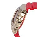 Наручные часы выполнены в облике моделей 80-х годов. 3 окошка Triple Graph разного размера расположились в верхней части циферблата, в нижней – цифровой дисплей. Противоударный корпусУдаропрочный корпусМеханизм заключён в корпус, выполненный из современных материалов, устойчивых к ударам, механическим повреждениям и падению с высоты: инновационный пластик, карбон, нержавеющая сталь, титан. сделан из сочетания пластика и карбоновых волокон, он защищён стальной накладкой, отполированной до зеркального блеска. Комфортный ремешок изготовлен из полимера красного цвета. Японский кварцевый механизм. Эксплуатационный срок батарейки – 2 года. Минеральное стекло. Электролюминесцентная подсветкаЭлектролюминесцентная подсветкаЭлектролюминесцентная панель устанавливается под ЖК-экраном часов, при нажатии кнопки электричество преобразуется в свет за счёт подачи напряжения на атомы фосфора, такой тип подсветки позволяет освещать весь циферблат. сине-зелёного оттенка. Водостойкость 200 метров. Световая индикация сигнала. Секундомер, многофункциональный будильник, таймер, хронографХронографФункция позволяет измерять отрезки времени с особой точностью: часы, минуты, секунды. Верным признаком хронографа является наличие на циферблате 3 дополнительных окошек-счётчиков., автокалендарь. Габариты: 49,7 x 53,9 x 18,6 мм.