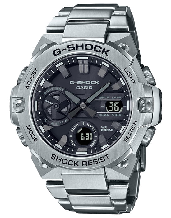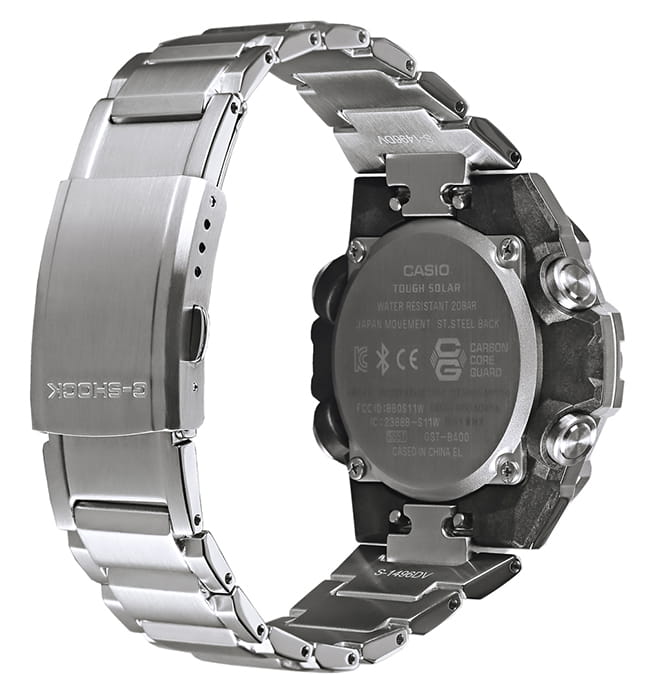 Японские мужские часы противоударные с Bluetooth Casio G-Shock GST-B400D-1ADR (GST-B400D-1A), электронный механизм с высокой точностью. Класс водозащиты: 200 метров, позволит плавать, нырять и заниматься другими водными видами спорта. Корпус часов изготовлен из карбона, цвета.