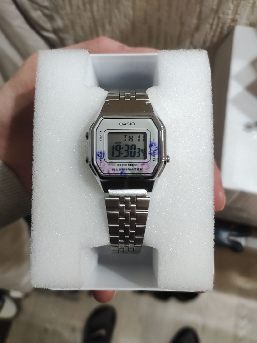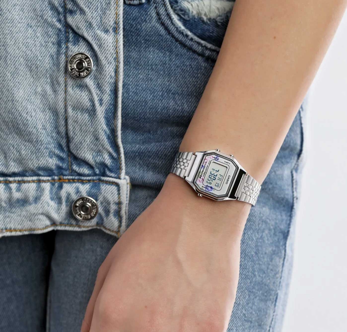 Электронные часы Casio Vintage LA680WA-4C с пластиковым стеклом . Водостойкость 30 метров, позволит защитить корпус от случайных брызг или капель дождя. Циферблат подсвечивается светодиодомСветодиодная подсветкаСветодиодная или LED-подсветка обеспечивает появление яркого холодного свечения за счёт LED-элементов - маленьких лампочек. Они потребляют минимальное количество энергии, чаще всего можно встретить 1 светодиод, в нижней части циферблата.. СекундомерСекундомерСекундоме́р — прибор, способный измерять интервалы времени с точностью до долей секунды. с точностью показаний 1/100с и временем измерения 1ч. Сплит-хронографСплит-хронографИспользуется для измерения продолжительности нескольких временных отрезков, начинающихся одновременно, а заканчивающихся в разное время.. Батарея рассчитана на 5 лет. Водонепроницаемость в соответствии с DIN 8310/ISO 2281. Задняя крышка крепится на 4-х винтах. Браслет с регулируемой застежкой.