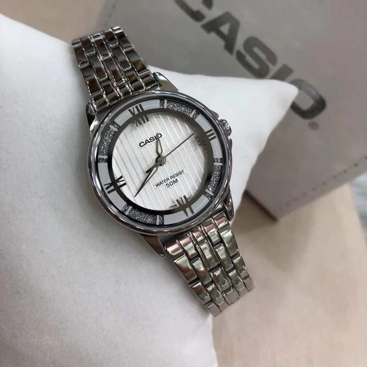 Японские женские часы Casio Collection LTP-1391D-7A2 изящно смотрятся на запястье, они привлекают классическим исполнением и правильной геометрией. Минималистичная модель станет отличным решением для любого случая: на работу, переговоры с деловыми партнёрами, прогулку с друзьями или праздничный вечер. Отсутствуют лишние детали, что позволяет часам быть актуальными на долгие годы. Циферблат с люминесцентным покрытиемЛюминесцентное покрытиеПозволяет считывать показания времени в темноте. Производители наносят на стрелки, часовые индексы, безель или поверхность циферблата светонакопительный состав, дающий холодное свечение. стрелок, дополнен минеральным стекломМинеральное стеклоМинеральное стекло представляет собой искусственно выращенный минерал кварца. Такое стекло отличается особой устойчивостью к повреждениям и царапинам. Уступает по некоторым качествам сапфировому стеклу. , устойчивым к мелким механическим повреждениям. Модель комплектуется надёжным механизмом, точность хода которого составляет +/- 20 сек/мес. Класс водозащиты: 50 метров, позволит защитить корпус от случайных брызг или капель дождя. Циферблат с метками в виде штрихов и римских цифр. Стальной браслет на раскладной застёжкеРаскладная застёжкаТакой тип застёжки используется только на браслетах из металла. Она никогда не раскрывается полностью, происходит разделение на 2 и более частей. Раскладывающая застёжка снизит вероятность потери часов к минимуму..