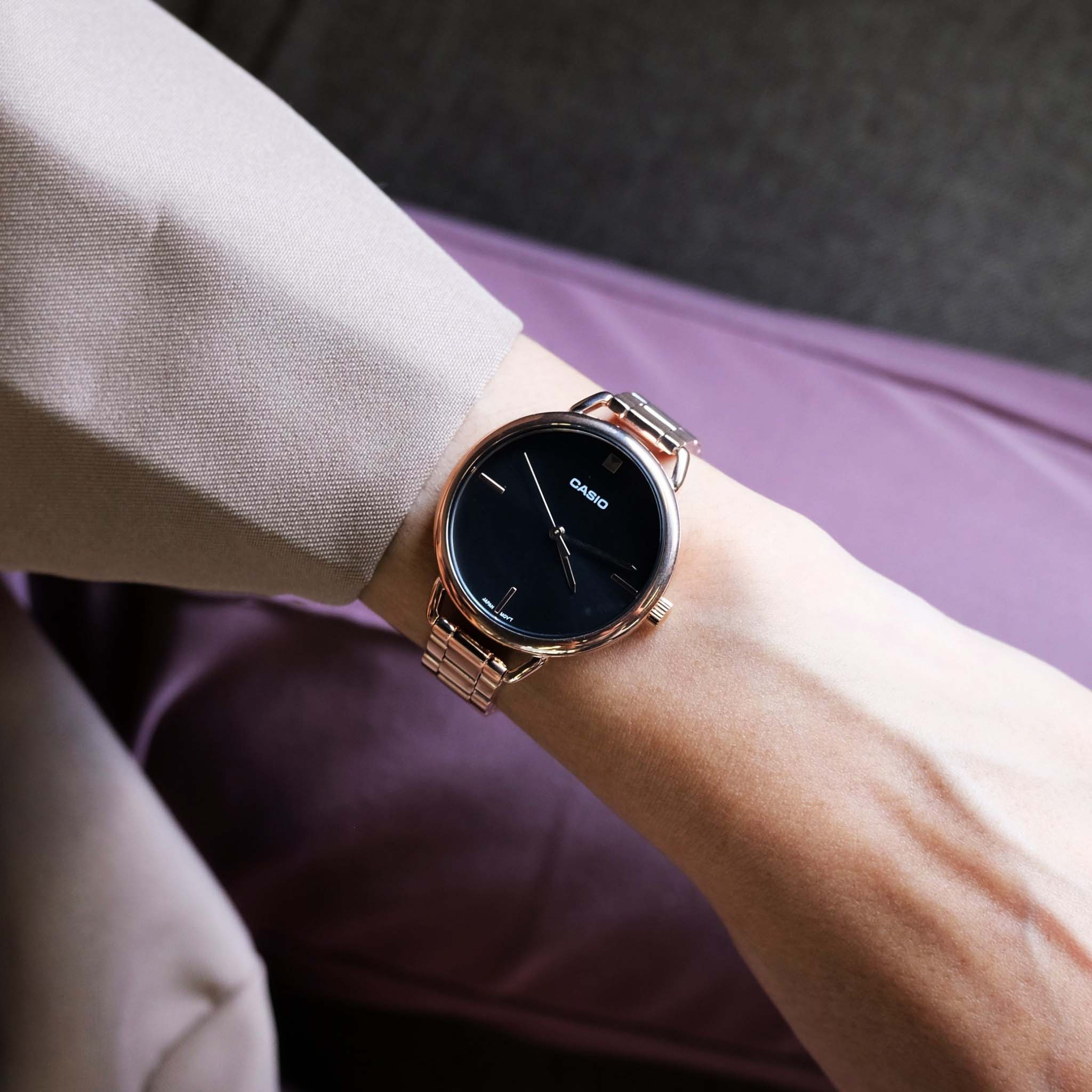 Японские женские часы из коллекции LTP с минеральным стекломМинеральное стеклоМинеральное стекло представляет собой искусственно выращенный минерал кварца. Такое стекло отличается особой устойчивостью к повреждениям и царапинам. Уступает по некоторым качествам сапфировому стеклу. изящно смотрятся на запястье, они привлекают классическим исполнением и правильной геометрией. Минималистичная модель станет отличным решением для любого случая: на работу, переговоры с деловыми партнёрами, прогулку с друзьями или праздничный вечер. Отсутствуют лишние детали, что позволяет часам быть актуальными на долгие годы. Корпус выполнен из нержавеющей стали с IP-покрытиемIP-покрытиеМетод ионного напыления. Демонстрирует повышенную устойчивость к истиранию, окислению и химическим веществам. Под воздействием высокого давления и температуры около 1500°C молекулы металла надёжно соединяются с частицами корпуса часов.. Браслет с раскладной застёжкойРаскладная застёжкаТакой тип застёжки используется только на браслетах из металла. Она никогда не раскрывается полностью, происходит разделение на 2 и более частей. Раскладывающая застёжка снизит вероятность потери часов к минимуму.. Модель комплектуется надёжным механизмом, точность хода которого составляет +/- 20 сек/мес.