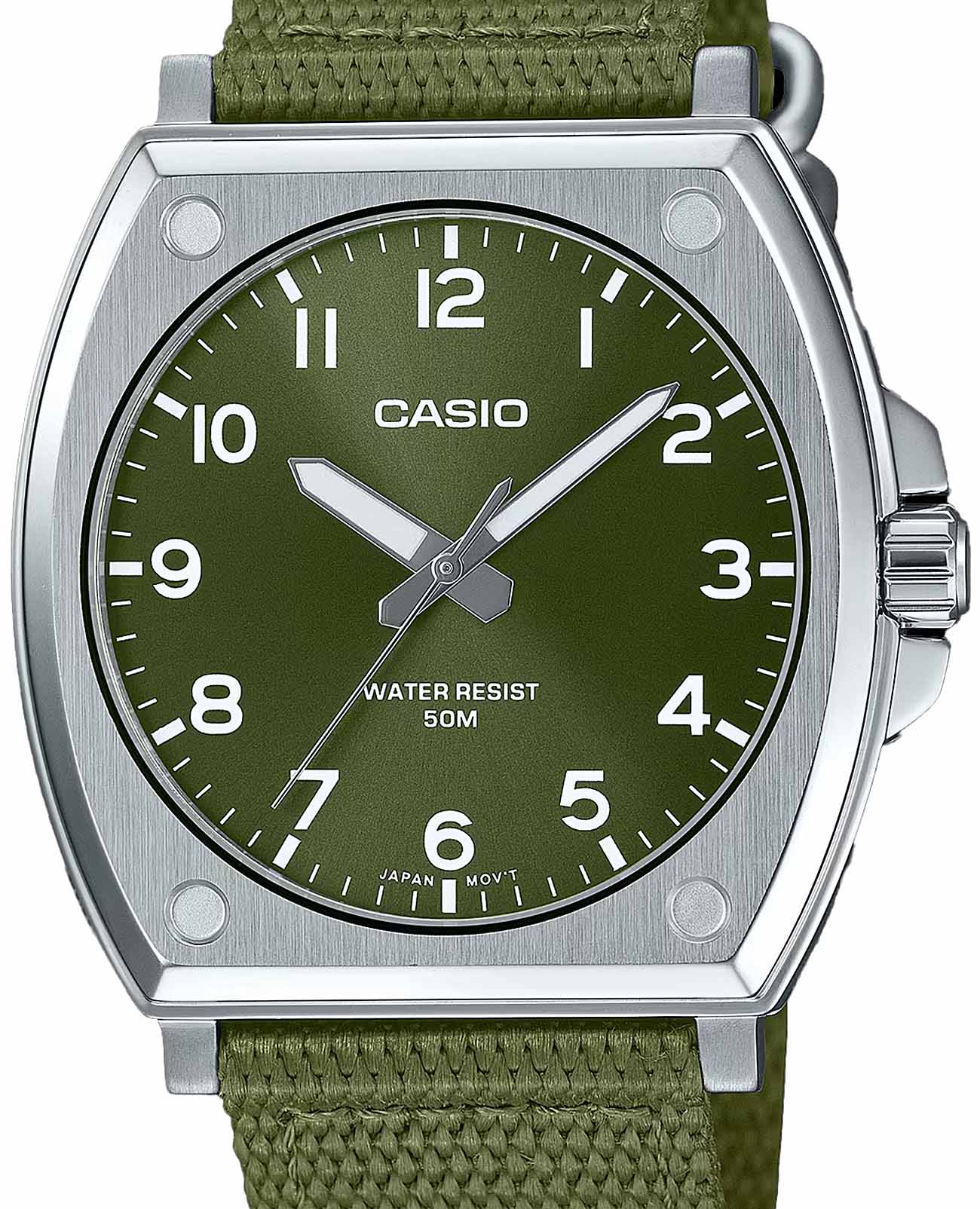 Японские мужские часы с минеральным стекломМинеральное стеклоМинеральное стекло представляет собой искусственно выращенный минерал кварца. Такое стекло отличается особой устойчивостью к повреждениям и царапинам. Уступает по некоторым качествам сапфировому стеклу. Casio Collection MTP-E730C-3AV, кварцевый механизм с высокой точностью. Корпус часов изготовлен из нержавеющей стали. Стрелки с люминесцентным покрытиемЛюминесцентное покрытиеПозволяет считывать показания времени в темноте. Производители наносят на стрелки, часовые индексы, безель или поверхность циферблата светонакопительный состав, дающий холодное свечение.. Батарея рассчитана на 3 года. Заводная головка с защитой. Класс водозащиты: 50 метров, позволит защитить корпус от случайных брызг или капель дождя. Тканевый ремешок.