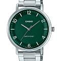 Мужские кварцевые часы Casio Collection — это универсальный аксессуар на каждый день. Корпус размером 46 мм и толщиной 8,2 мм выполнен из нержавеющей стали. Циферблат зелёного цвета оформлен штрихами, арабскими цифрами и стрелками. Циферблат защищён минеральным стекломМинеральное стеклоМинеральное стекло представляет собой искусственно выращенный минерал кварца. Такое стекло отличается особой устойчивостью к повреждениям и царапинам. Уступает по некоторым качествам сапфировому стеклу.. Часы оснащены стальным браслетом из нержавеющей стали на раскладной застёжкеРаскладная застёжкаТакой тип застёжки используется только на браслетах из металла. Она никогда не раскрывается полностью, происходит разделение на 2 и более частей. Раскладывающая застёжка снизит вероятность потери часов к минимуму.. Водонепроницаемость 30 м позволяет использовать часы в повседневных условиях. Идеальный выбор для тех, кто ценит японское качество и универсальный дизайн.