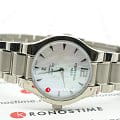 С виду женственная модель внутри – крепкий орешек. Корпус с концепцией DSDS ConceptDouble Security Concept, обозначает двойную надёжность и безупречную точность часов Certina. Двойная система защиты подразумевает обеспечение максимальной устойчивости к ударам и высоких показателей водонепроницаемости. выполнен из прочного гипоаллергенного титана. Перламутровый циферблат защищён сапфировым стеклом. Водозащита WR 100. Отображение числа.
