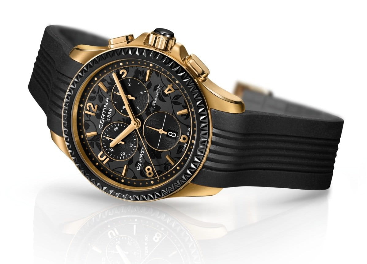 Женские швейцарские часы с сапфировым стеклом Certina DS First Lady Ceramic 38mm C030.217.37.057.00 с черным каучуковым ремешком отлично дополнят Ваш повседневный образ. Кварцевый механизм с высокой точностью. Сапфировое стекло устойчивое к появлению царапин, обладающее высокой прозрачностью. Класс водозащиты: 100 метров, позволит плавать, нырять и заниматься другими водными видами спорта. Корпус часов изготовлен из стали, позолоченного цвета.