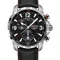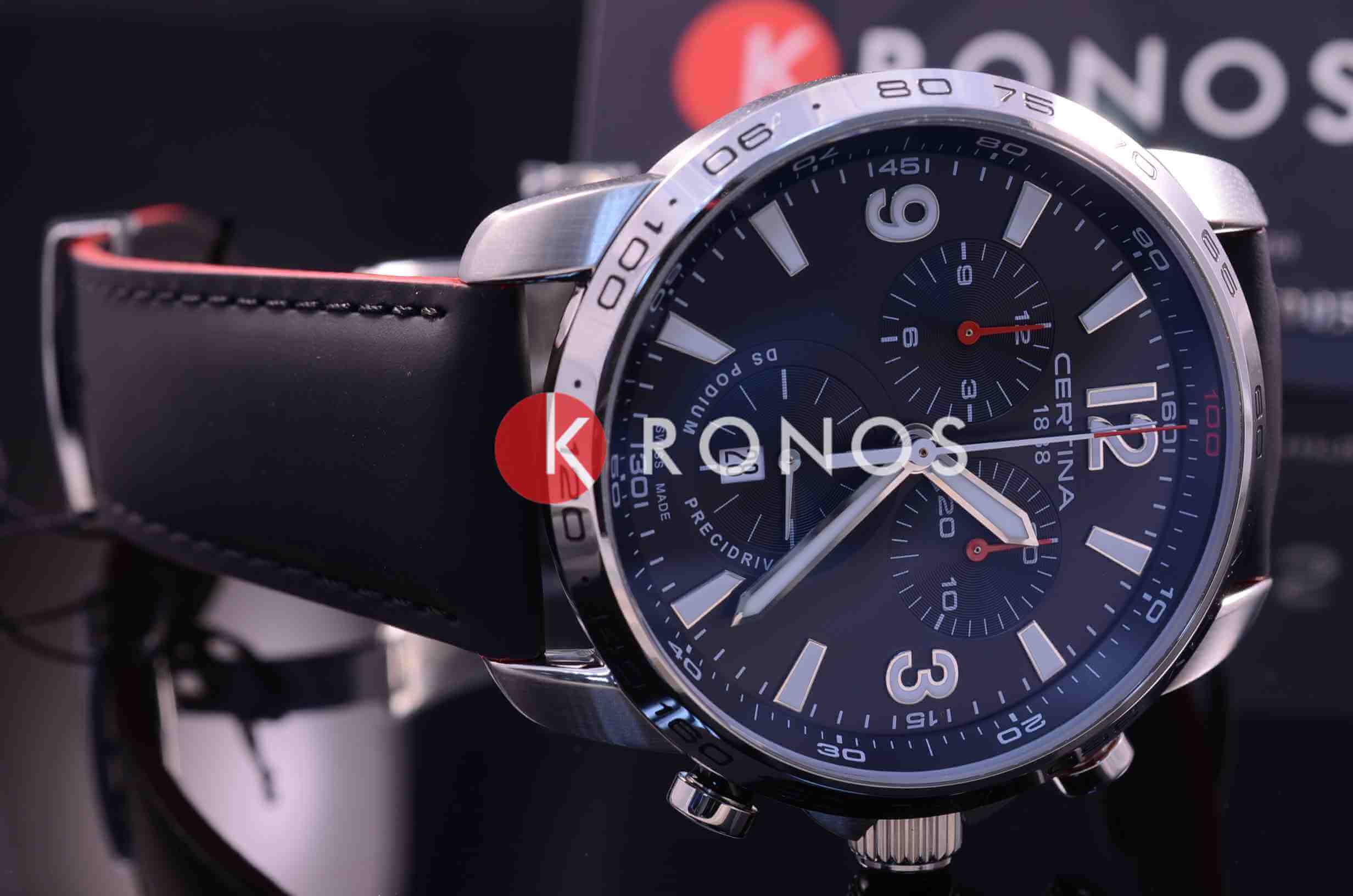 Брендовый хронографХронографФункция позволяет измерять отрезки времени с особой точностью: часы, минуты, секунды. Верным признаком хронографа является наличие на циферблате 3 дополнительных окошек-счётчиков. в чёрно-серебристом исполнении дополнен красными элементами, придающими общему виду динамичность. Наручные часы отличаются повышенной устойчивостью к высоким нагрузкам благодаря реализации фирменной концепции Двойной Надёжности DS ConceptDS ConceptDouble Security Concept, обозначает двойную надёжность и безупречную точность часов Certina. Двойная система защиты подразумевает обеспечение максимальной устойчивости к ударам и высоких показателей водонепроницаемости.. Швейцарский кварцевый механизм с высокой точностью хода ETA 251.264 AA Precidrive™Precidrive™Инновационный кварцевый механизм Certina. Часы, оснащённые этим швейцарским калибром, приравниваются к точности к сертифицированным хронометрам, точность хода составляет +/-10 секунд в год.. Повышенная водонепроницаемость WR 200. Завинчивающаяся заводная головка с защитой, закручивающаяся задняя крышка с гравировкой. Двухстороннее антибликовое покрытие сапфирового стекла. БезельБезельВнешний ободок, закрепляющий стекло. В спортивных часах так называется поворотное кольцо с делениями на циферблате, выполняет роль таймера – замеряет отрезки времени на шкале. Неподвижный безель – элемент декора. Однонаправленно вращающийся безель на дайверских часах позволяет фиксировать моменты погружения и выныривания на поверхность. со шкалой тахиметраТахиметрРазмеченная шкала, располагается на ободке или безеле часов. Тахиметр позволяет рассчитать скорость на определённом участке пути, расстояние измеряется в километрах или милях.. Яркая люминесцентная подсветкаЛюминесцентное покрытиеПозволяет считывать показания времени в темноте. Производители наносят на стрелки, часовые индексы, безель или поверхность циферблата светонакопительный состав, дающий холодное свечение.. Кожаный ремешок из натурального материала. Механизм индикации часовых поясов, отображение даты, измерение времени с точностью до 1/100 секунды. . Диаметр корпуса: 44 мм.
