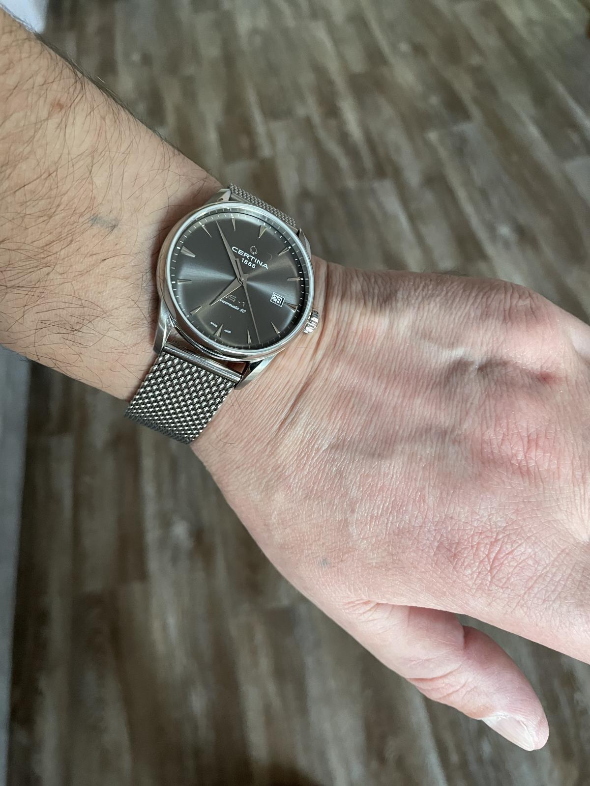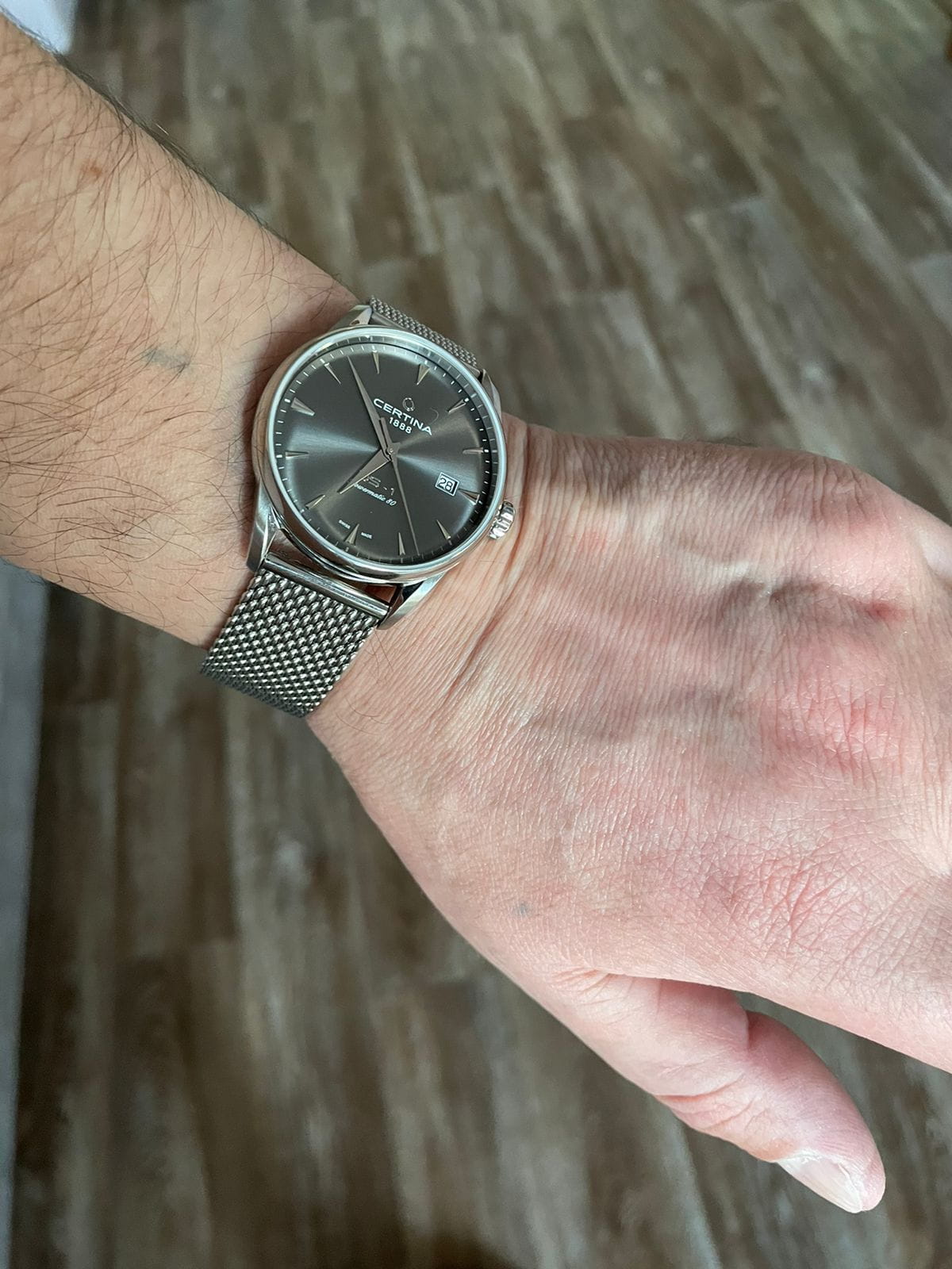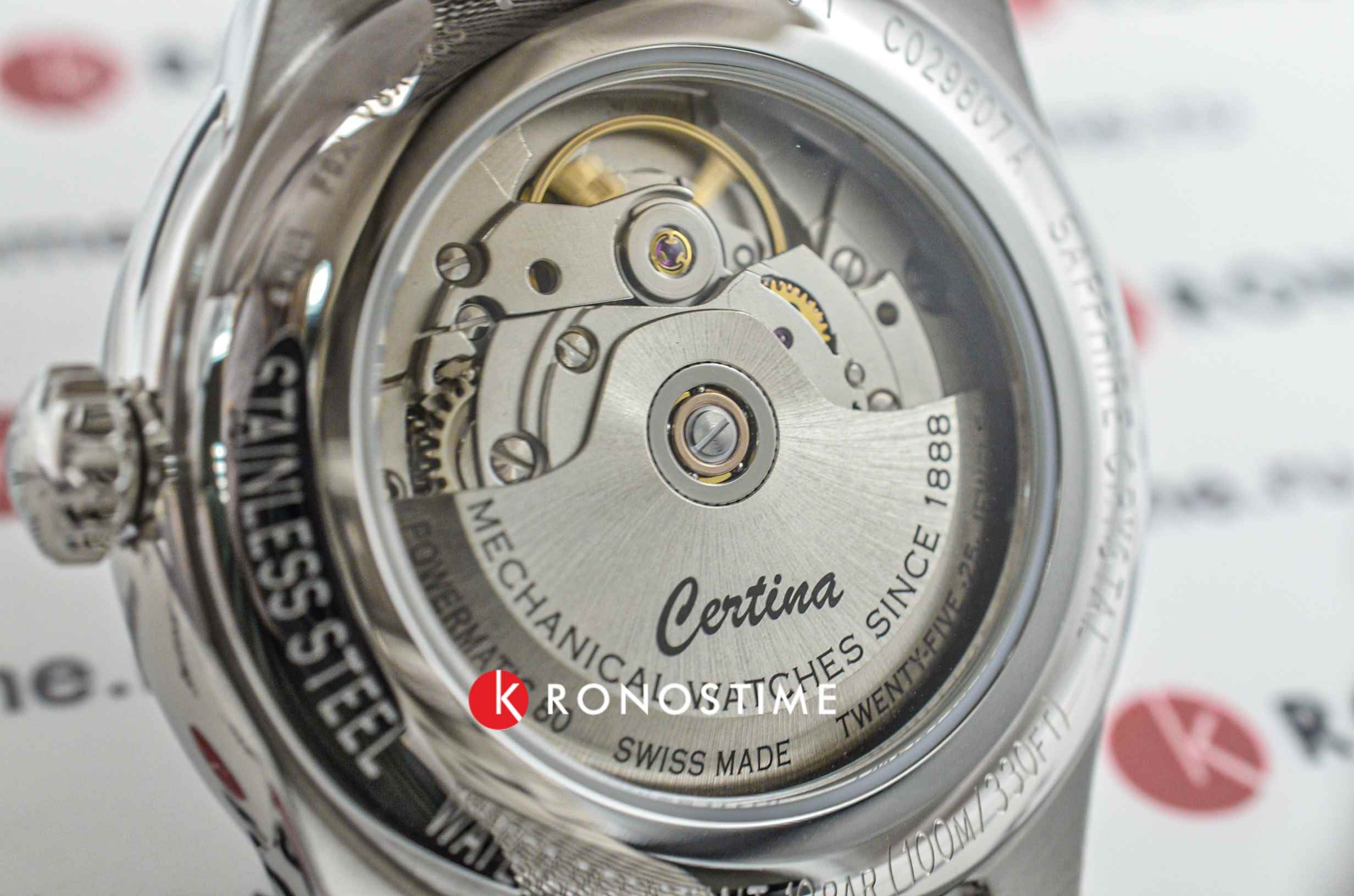 Аксессуар выполнен в классическом стиле, элегантно смотрится сатинированный синий циферблат. Надёжный стальной корпус дополнен уплотнительным кольцом в соответствии с концепцией Двойной Надёжности DSDS ConceptDouble Security Concept, обозначает двойную надёжность и безупречную точность часов Certina. Двойная система защиты подразумевает обеспечение максимальной устойчивости к ударам и высоких показателей водонепроницаемости.. Он защищает швейцарский автоматический механизм ETA Powermatic 80Powermatic 80Эксклюзивный калибр от швейцарской компании ETA с увеличенным запасом хода до 80 часов за счёт удлинённой заводной пружины. Характеризуется улучшенной системой спуска со сниженным трением. с увеличенным запасом хода до 80 часов. Калибр дополнен кремниевой спиралью Nivachron™, устраняющей действие магнитных полей. Выпуклое сапфировое стекло имеет покрытие антиблик. Часы водонепроницаемы до 100 метров. Браслет оснащён системой быстрой замены. В нижней части циферблата размещена крупная апертура даты. Диаметр корпуса: 40 мм.