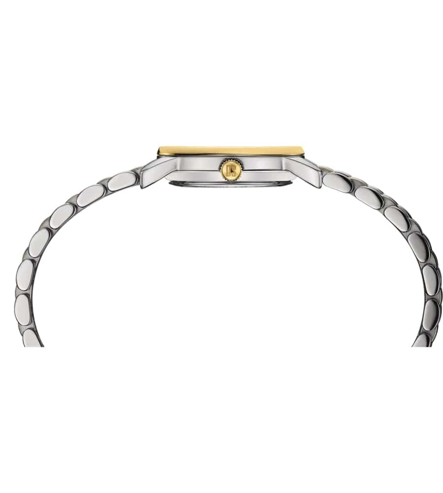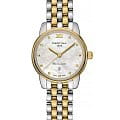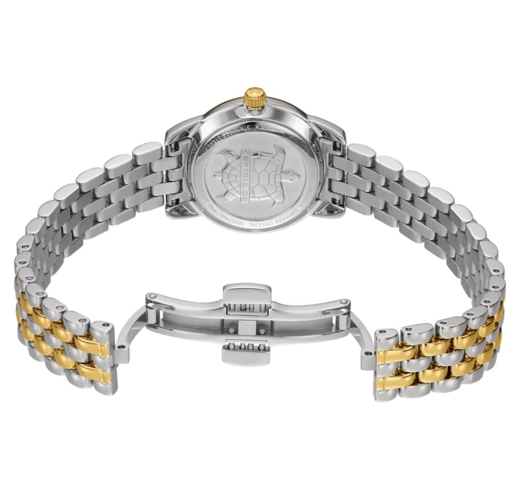Изысканный аксессуар – лучший вариант для делового костюма или вечернего наряда. Эффектный перламутровый циферблат, бело-серого цвета дополнен незатейливым узором и золотистой часовой разметкой. Часы привлекают не только дизайном, но и абсолютной точностью: швейцарский кварцевый механизм ETA F03.412 Precidrive™Precidrive™Инновационный кварцевый механизм Certina. Часы, оснащённые этим швейцарским калибром, приравниваются к точности к сертифицированным хронометрам, точность хода составляет +/-10 секунд в год. удостоился официального сертификата COSCСертификат COSCОфициальный сертификат, подтверждающий то, что часы ходят с особо высокой точностью. Для получения документа часы подвергаются тестовым испытаниям, разработанным швейцарским институтом тестирования хронометров COSC. Допустимая норма для механических часов -4/+6 секунд в день, для кварцевых моделей +/- 0,07 секунд в день.. Система DS ConceptDS ConceptDouble Security Concept, обозначает двойную надёжность и безупречную точность часов Certina. Двойная система защиты подразумевает обеспечение максимальной устойчивости к ударам и высоких показателей водонепроницаемости.. Противокоррозионная сталь 316L с PVD-покрытиемPVDУльтратонкое покрытие наносится в технике вакуумного напыления, сочетает в себе нитрид титана особой прочности со слоем золота или оксида хрома. Несёт в себе декоративную или защитную функцию.. Степень водозащиты WR 100. Сапфировое стеклоСапфировое стеклоПрочный и надёжный материал из кристалла сапфира синтетического происхождения, характеризующийся особой твёрдостью и устойчивостью к царапинам и повреждениям. с антибликовой обработкой. Застёжка «бабочка» с кнопкамиЗастёжка "бабочка"Такой вид застёжки дополняется предохранителями, помогающими избежать случайного раскрытия браслета. Обладают изящным исполнением. . Отображение числа, индикатор EOLEOLПредставляет собой систему, уведомляющую владельца часов о необходимости замены элемента питания. За 2 недели до полного разряда батарейки секундная стрелка перестаёт ходить чётко и начинает перепрыгивать на 3-4 деления.. Диаметр корпуса: 27,5 мм.