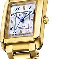 Элегантные часы Citizen EW5602-81D произведены в Японии и оснащены надежным кварцевым механизмом с калибром Citizen B035, работающим на инновационной системе Eco-Drive — часы заряжаются от солнечного света и не требуют замены батарейки, обеспечивая запас хода до 210 дней. Корпус выполнен из нержавеющей стали с изящным золотистым IP-покрытиемIP-покрытиеМетод ионного напыления. Демонстрирует повышенную устойчивость к истиранию, окислению и химическим веществам. Под воздействием высокого давления и температуры около 1500°C молекулы металла надёжно соединяются с частицами корпуса часов., а перламутровый циферблат защищает выпуклое сапфировое стеклоСапфировое стеклоПрочный и надёжный материал из кристалла сапфира синтетического происхождения, характеризующийся особой твёрдостью и устойчивостью к царапинам и повреждениям., устойчивое к царапинам. Метки представлены в виде штрихов и арабских цифр, что делает показания времени особенно удобочитаемыми. Стальной браслет с изящным золотистым IP-покрытиемIP-покрытиеМетод ионного напыления. Демонстрирует повышенную устойчивость к истиранию, окислению и химическим веществам. Под воздействием высокого давления и температуры около 1500°C молекулы металла надёжно соединяются с частицами корпуса часов. и надежной застежкой «бабочка»Застёжка "бабочка"Такой вид застёжки дополняется предохранителями, помогающими избежать случайного раскрытия браслета. Обладают изящным исполнением. обеспечивает комфорт при носке. Габариты корпуса составляют 21,5 на 28,4 мм, толщина — 7,5 мм, а вес — 68 граммов. Водозащита уровня 50WR позволяет не беспокоиться о случайных брызгах, мытье рук или дожде. Эта модель станет изысканным дополнением вашего образа и подчеркнет ваш утонченный вкус.
