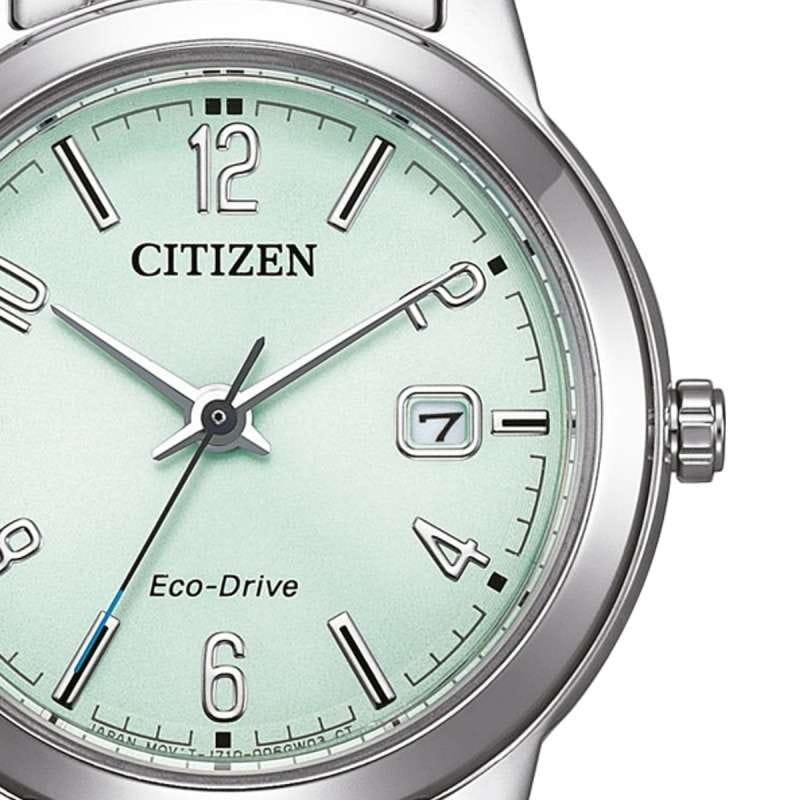 Citizen FE1241-71X — изящные японские часы, сочетающие современные технологии и классический стиль. Модель оснащена надежным кварцевым механизмом Citizen J710 с инновационной системой Eco-Drive, обеспечивающей питание от солнечной энергии без необходимости замены батарейки. Корпус и браслет выполнены из высококачественной нержавеющей стали, что гарантирует долговечность и комфорт при ежедневном ношении. Браслет оснащен надежной раскладной застёжкойРаскладная застёжкаТакой тип застёжки используется только на браслетах из металла. Она никогда не раскрывается полностью, происходит разделение на 2 и более частей. Раскладывающая застёжка снизит вероятность потери часов к минимуму. с системой блокировки, что обеспечивает дополнительную безопасность при ношении. Защиту от мелких повреждений обеспечивает прочное минеральное стеклоМинеральное стеклоМинеральное стекло представляет собой искусственно выращенный минерал кварца. Такое стекло отличается особой устойчивостью к повреждениям и царапинам. Уступает по некоторым качествам сапфировому стеклу.. Мятный циферблат, выполненный по технологии Sunray (солнечные лучи), украшен аккуратными часовыми метками и арабскими цифрами, предусмотрена функция индикации даты. Функция индикации заряда EOLEOLПредставляет собой систему, уведомляющую владельца часов о необходимости замены элемента питания. За 2 недели до полного разряда батарейки секундная стрелка перестаёт ходить чётко и начинает перепрыгивать на 3-4 деления. своевременно подскажет о необходимости подзарядки. Водостойкость WR 30 позволяет не беспокоиться о случайных брызгах воды. Диаметр корпуса составляет 29,4 мм, что делает модель особенно элегантной и удобной.