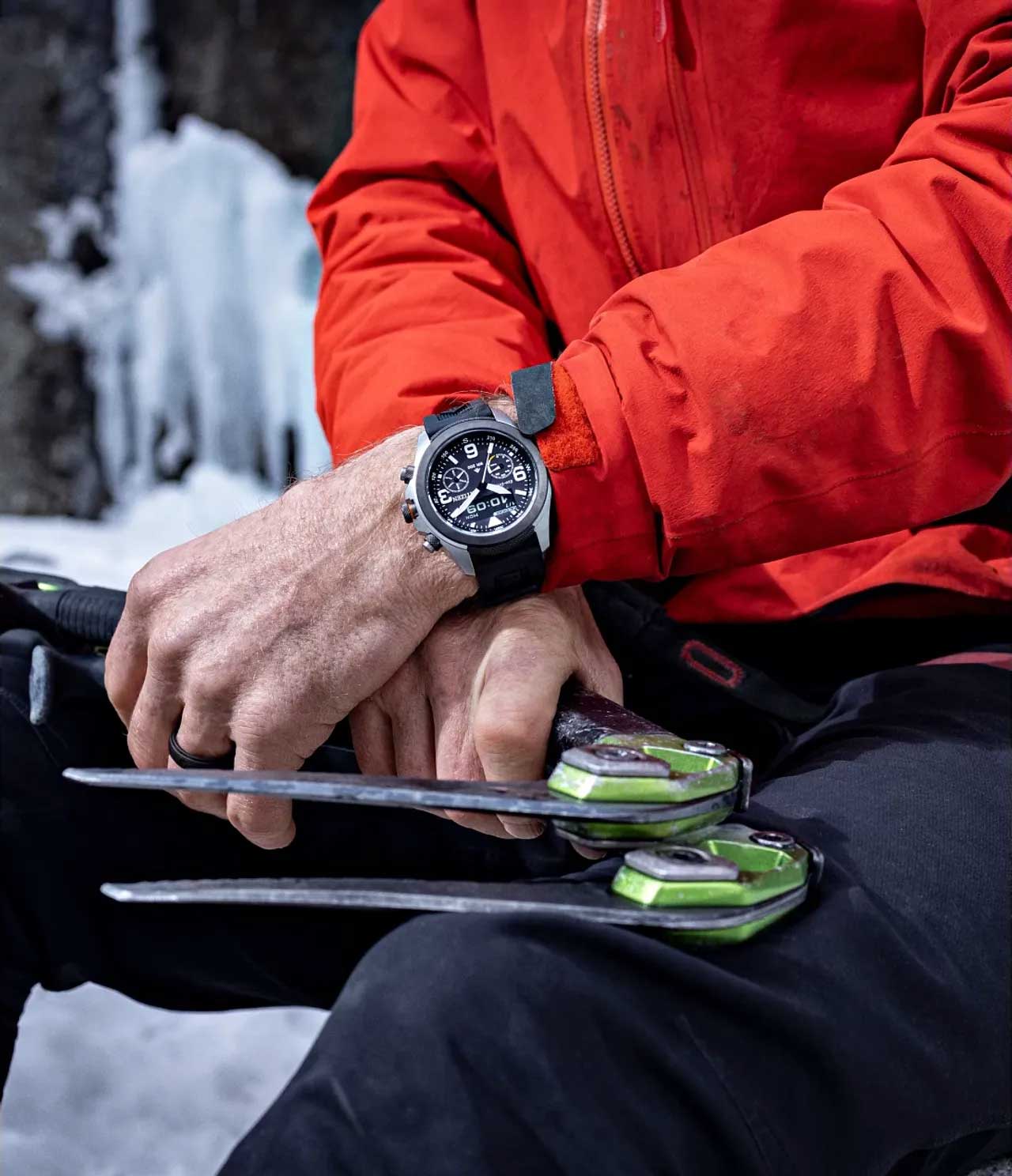 Citizen Promaster JV1007-07E часы-хронографХронографФункция позволяет измерять отрезки времени с особой точностью: часы, минуты, секунды. Верным признаком хронографа является наличие на циферблате 3 дополнительных окошек-счётчиков. с секундомеромСекундомерСекундоме́р — прибор, способный измерять интервалы времени с точностью до долей секунды. спортивного дизайна с высоким уровнем водозащиты. Корпус из нержавеющей стали диаметром 43,9 мм идеально сбалансирован. Сапфировое стеклоСапфировое стеклоПрочный и надёжный материал из кристалла сапфира синтетического происхождения, характеризующийся особой твёрдостью и устойчивостью к царапинам и повреждениям. с антибликовым покрытием обеспечивает отличную защиту циферблата от царапин. Часы работают на основе кварцевого механизма, питание от солнечной энергии, запас энергии на 360 дней. Время работы при полной зарядке и включенной функции сохранения энергии до 3 лет. Полиуретановый ремешок на стандартной застежке идеально дополняют дизайн часов, обеспечивая комфортное ношение. Стрелки и метки на циферблате имеют люминесцентное покрытиеЛюминесцентное покрытиеПозволяет считывать показания времени в темноте. Производители наносят на стрелки, часовые индексы, безель или поверхность циферблата светонакопительный состав, дающий холодное свечение. позволяющее легко определять время даже в темноте. LCD дисплей с светодиодной подсветкойСветодиодная подсветкаСветодиодная или LED-подсветка обеспечивает появление яркого холодного свечения за счёт LED-элементов - маленьких лампочек. Они потребляют минимальное количество энергии, чаще всего можно встретить 1 светодиод, в нижней части циферблата.. Вращающийся внутренний безельБезельВнешний ободок, закрепляющий стекло. В спортивных часах так называется поворотное кольцо с делениями на циферблате, выполняет роль таймера – замеряет отрезки времени на шкале. Неподвижный безель – элемент декора. Однонаправленно вращающийся безель на дайверских часах позволяет фиксировать моменты погружения и выныривания на поверхность. с IP-покрытиемIP-покрытиеМетод ионного напыления. Демонстрирует повышенную устойчивость к истиранию, окислению и химическим веществам. Под воздействием высокого давления и температуры около 1500°C молекулы металла надёжно соединяются с частицами корпуса часов. со шкалой компаса. Функция индикации заряда (EOL) и предотвращения перезарядки. Мировое времяМировое время Полезное часовое усложнение, отображающее время в основных городах и известных областях по всему миру, оно связано с часовыми поясами, удобно для путешественников и бизнесменов. - 43 города (29 часовых поясов), переход на зимнее и летнее время. Сплит-хронографСплит-хронографИспользуется для измерения продолжительности нескольких временных отрезков, начинающихся одновременно, а заканчивающихся в разное время.. ТаймерТаймерОтсчитывает секунды в обратном направлении в заданном интервале времени. обратного отсчета до 100мин. Всемирное координированное время UTCUTCВсемирное кординационное время, не имеющее привязки к географическому положению Гринвича, основывается на атомном отсчёте времени. Регулировка времени осуществляется более точно, чем устаревшее GMT.