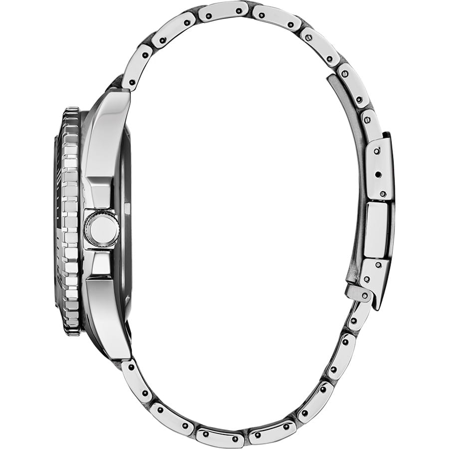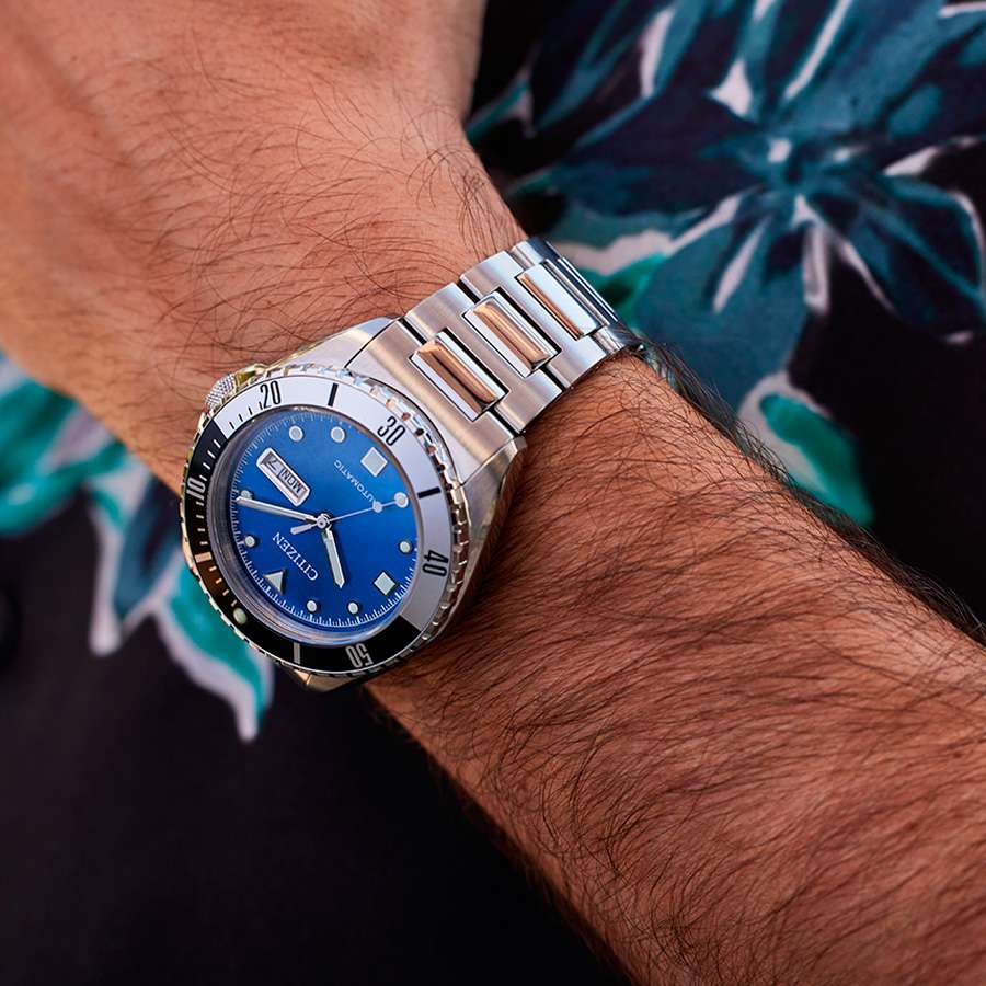 Мужские наручные часы Citizen Automatic NH7530-52M - сочетание спортивного стиля и повседневной функциональности. Корпус из нержавеющей стали диаметром 42 мм идеально сбалансирован. Сапфировое стеклоСапфировое стеклоПрочный и надёжный материал из кристалла сапфира синтетического происхождения, характеризующийся особой твёрдостью и устойчивостью к царапинам и повреждениям. обеспечивает отличную защиту циферблата от царапин. Механические часы с автоподзаводом. Стальной браслет на раскладной застёжкеРаскладная застёжкаТакой тип застёжки используется только на браслетах из металла. Она никогда не раскрывается полностью, происходит разделение на 2 и более частей. Раскладывающая застёжка снизит вероятность потери часов к минимуму. идеально дополняют дизайн часов, обеспечивая комфортное ношение. Окошко даты и дня недели в положении 3 часа. Стрелки и метки с люминесцентным покрытиемЛюминесцентное покрытиеПозволяет считывать показания времени в темноте. Производители наносят на стрелки, часовые индексы, безель или поверхность циферблата светонакопительный состав, дающий холодное свечение.. Однонаправленный вращающийся безельБезельВнешний ободок, закрепляющий стекло. В спортивных часах так называется поворотное кольцо с делениями на циферблате, выполняет роль таймера – замеряет отрезки времени на шкале. Неподвижный безель – элемент декора. Однонаправленно вращающийся безель на дайверских часах позволяет фиксировать моменты погружения и выныривания на поверхность. с IP-покрытиемIP-покрытиеМетод ионного напыления. Демонстрирует повышенную устойчивость к истиранию, окислению и химическим веществам. Под воздействием высокого давления и температуры около 1500°C молекулы металла надёжно соединяются с частицами корпуса часов.. Завинчивающаяся прозрачная задняя крышка. Циферблат с часовыми индексами в виде штрихов и точек. Часы обладают водонепроницаемостью до 100WR, что делает их идеальными для повседневной носки.