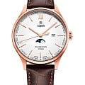 Мужские наручные часы Cover CO202.06 из коллекции Chapman Moon&Stars Gent сочетают в себе классический дизайн и надежность современных технологий. Модель обладает круглым корпусом диаметром 41 мм, изготовленным из нержавеющей стали с PVD-покрытиемPVDУльтратонкое покрытие наносится в технике вакуумного напыления, сочетает в себе нитрид титана особой прочности со слоем золота или оксида хрома. Несёт в себе декоративную или защитную функцию., что обеспечивает высокую устойчивость к внешним воздействиям. Браслет выполнен из натуральной кожи, гарантирующей комфортное ношение. Белый циферблат оснащен окном даты на «3 часах» и индикатором фаз Луны. Для защиты используется минеральное стеклоМинеральное стеклоМинеральное стекло представляет собой искусственно выращенный минерал кварца. Такое стекло отличается особой устойчивостью к повреждениям и царапинам. Уступает по некоторым качествам сапфировому стеклу., обеспечивающее прочную защиту от царапин. Часы работают на кварцевом механизме, что гарантирует точное время без необходимости подзаводки. Модель также обладает водонепроницаемостью до 5 атмосфер (50 метров), что позволяет использовать их во время плавания без ныряния.