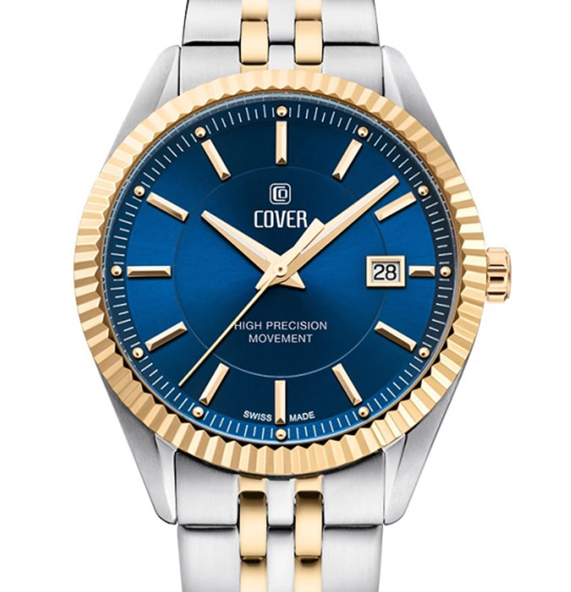 Наручные часы Cover CO208.09 из коллекции Alston — это воплощение мужской элегантности и швейцарского мастерства. Модель привлекает внимание своим безупречным дизайном и высокотехнологичным исполнением, что делает ее идеальным выбором для тех, кто ценит классику с современным акцентом. В основе работы часов лежит надежный кварцевый механизм ETA, известный своей исключительной точностью и долговечностью. Этот швейцарский калибр гарантирует стабильность хода и минимальную погрешность, а маркировка «Swiss Made» подтверждает соответствие высочайшим стандартам качества. Циферблат синего цвета с текстурированным узором и контрастными штрихами, защищен минеральным стекломМинеральное стеклоМинеральное стекло представляет собой искусственно выращенный минерал кварца. Такое стекло отличается особой устойчивостью к повреждениям и царапинам. Уступает по некоторым качествам сапфировому стеклу. с сапфировым напылением. Браслет из нержавеющей стали с частичным PVD-покрытиемPVDУльтратонкое покрытие наносится в технике вакуумного напыления, сочетает в себе нитрид титана особой прочности со слоем золота или оксида хрома. Несёт в себе декоративную или защитную функцию. цвета желтого золота. БезельБезельВнешний ободок, закрепляющий стекло. В спортивных часах так называется поворотное кольцо с делениями на циферблате, выполняет роль таймера – замеряет отрезки времени на шкале. Неподвижный безель – элемент декора. Однонаправленно вращающийся безель на дайверских часах позволяет фиксировать моменты погружения и выныривания на поверхность. рифленый с PVD-покрытиемPVDУльтратонкое покрытие наносится в технике вакуумного напыления, сочетает в себе нитрид титана особой прочности со слоем золота или оксида хрома. Несёт в себе декоративную или защитную функцию.. Часы Cover CO208.09 – это сочетание традиций швейцарского качества и современности.