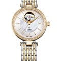 Часы COVER COA9.02 из коллекции Concerta Open Heart – элегантная модель швейцарского производства. Корпус и браслет выполнены из нержавеющей стали с PVDPVDУльтратонкое покрытие наносится в технике вакуумного напыления, сочетает в себе нитрид титана особой прочности со слоем золота или оксида хрома. Несёт в себе декоративную или защитную функцию. покрытием золотого цвета. Центральная область циферблата – белый перламутр, периферийная – круговое гильоше. Тонкий безельБезельВнешний ободок, закрепляющий стекло. В спортивных часах так называется поворотное кольцо с делениями на циферблате, выполняет роль таймера – замеряет отрезки времени на шкале. Неподвижный безель – элемент декора. Однонаправленно вращающийся безель на дайверских часах позволяет фиксировать моменты погружения и выныривания на поверхность. инкрустированный кристаллами Swarovski подчеркивает изысканный стиль. Сапфировое стеклоСапфировое стеклоПрочный и надёжный материал из кристалла сапфира синтетического происхождения, характеризующийся особой твёрдостью и устойчивостью к царапинам и повреждениям. защищает поверхность от повреждений. Водозащита 100 метров делает часы практичными для повседневного использования. Диаметр корпуса – 35 мм. Застёжка бабочкаЗастёжка "бабочка"Такой вид застёжки дополняется предохранителями, помогающими избежать случайного раскрытия браслета. Обладают изящным исполнением. обеспечивает надежную фиксацию и удобство в носке.