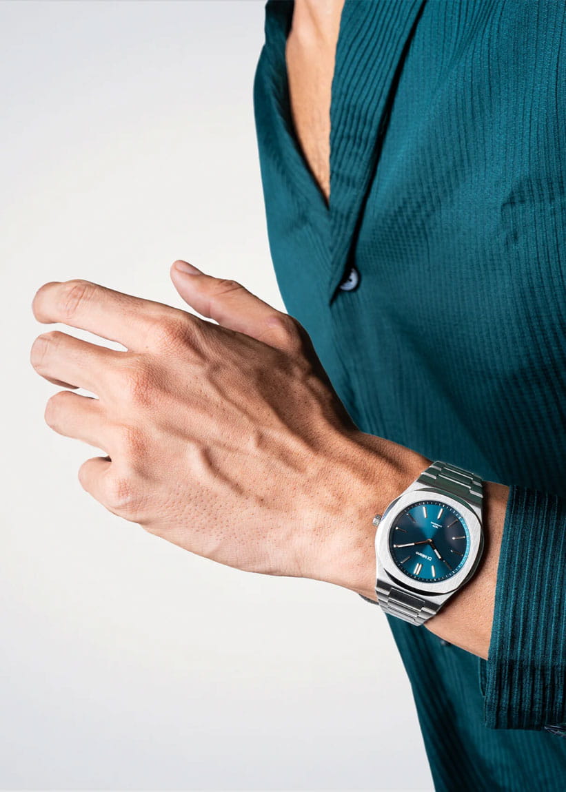 Мужские кварцевые часы D1 Milano Ultra Thin UHBJ03 — это стильное сочетание элегантности и современного дизайна. Изящный ультратонкий корпус выполнен из нержавеющей стали, диаметром 39 мм, что придаст образу элегантности и надежности. Изысканный циферблат с метками в виде штрихов придает модели особый блеск. Циферблат защищен сапфировым стекломСапфировое стеклоПрочный и надёжный материал из кристалла сапфира синтетического происхождения, характеризующийся особой твёрдостью и устойчивостью к царапинам и повреждениям. с антибликовым покрытиемАнтибликовое покрытиеСлой оксида металла в 0,13-0,3 микрон, благодаря которому стекло часов не бликует и не отражает свет. Антибликовое покрытие уменьшает отражение света в 10 раз, обеспечивая отличную читаемость показателей циферблата., обеспечивающий устойчивость к царапинам. Стрелки с люминесцентным покрытиемЛюминесцентное покрытиеПозволяет считывать показания времени в темноте. Производители наносят на стрелки, часовые индексы, безель или поверхность циферблата светонакопительный состав, дающий холодное свечение.. Часы оснащены надежным кварцевым механизмом. Стальной браслет на застёжке-бабочке с кнопкамиЗастёжка "бабочка"Такой вид застёжки дополняется предохранителями, помогающими избежать случайного раскрытия браслета. Обладают изящным исполнением. , гарантирует комфортное и безопасное ношение. Класс водозащиты: 50 метров позволит защитить корпус от случайных брызг или капель дождя. Отличный выбор для тех, кто ценит утонченность и качество.