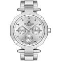 Женские кварцевые часы Daniel Klein — это стильный и функциональный аксессуар. Корпус диаметром 35 мм выполнен из металла. Циферблат серебристого цвета выполнен по технологии Sunray («солнечные лучи») и оформлен точками, клиновидными стрелками в стиле Dauphine и фирменным логотипом Daniel Klein в положении 12 часов. Присутствуют отдельные индикаторы дня недели и даты, а также 24-часовой формат времени. Циферблат защищён минеральным стекломМинеральное стеклоМинеральное стекло представляет собой искусственно выращенный минерал кварца. Такое стекло отличается особой устойчивостью к повреждениям и царапинам. Уступает по некоторым качествам сапфировому стеклу.. Механизм — японское кварцевое движение калибра TMI S.Epson VX3JE1. Гранёная заводная головка придаёт изделию дополнительный стиль. Часы оснащены стальным браслетом на раскладной застёжкеРаскладная застёжкаТакой тип застёжки используется только на браслетах из металла. Она никогда не раскрывается полностью, происходит разделение на 2 и более частей. Раскладывающая застёжка снизит вероятность потери часов к минимуму.. Водонепроницаемость 30 м позволяет использовать часы в повседневных условиях. Идеальный выбор для тех, кто ценит турецкое качество и универсальный дизайн.