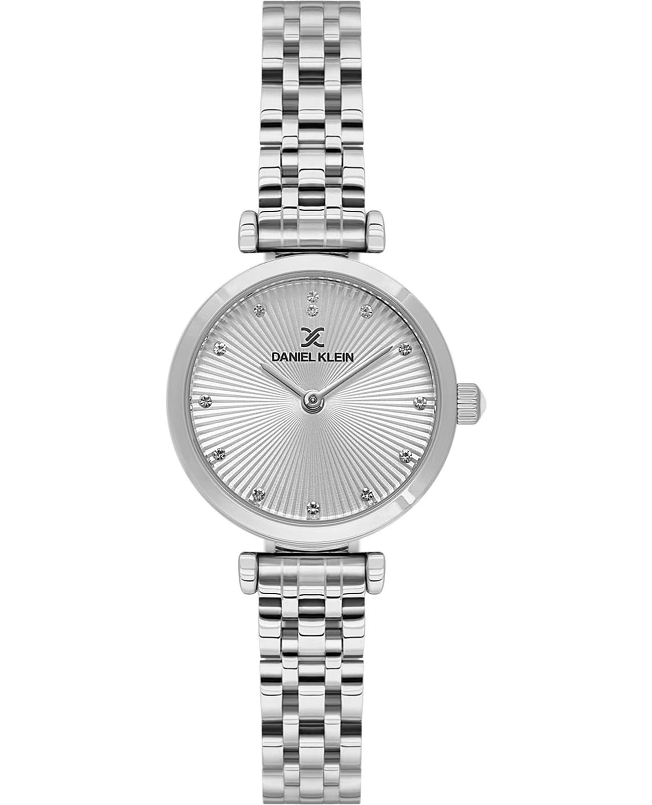 Женские кварцевые часы Daniel Klein — это прекрасный аксессуар для любых приключений. Корпус диаметром 28 мм выполнен из нержавеющей стали. Циферблат серебристого цвета гильошированный, оформлен точками с кристаллами и стрелками. Циферблат защищён минеральным стекломМинеральное стеклоМинеральное стекло представляет собой искусственно выращенный минерал кварца. Такое стекло отличается особой устойчивостью к повреждениям и царапинам. Уступает по некоторым качествам сапфировому стеклу.. Часы оснащены стальным браслетом на раскладной застёжкеРаскладная застёжкаТакой тип застёжки используется только на браслетах из металла. Она никогда не раскрывается полностью, происходит разделение на 2 и более частей. Раскладывающая застёжка снизит вероятность потери часов к минимуму.. Водонепроницаемость 30 м позволяет использовать часы в повседневных условиях. Идеальный выбор для тех, кто ценит турецкое качество и элегантный дизайн.