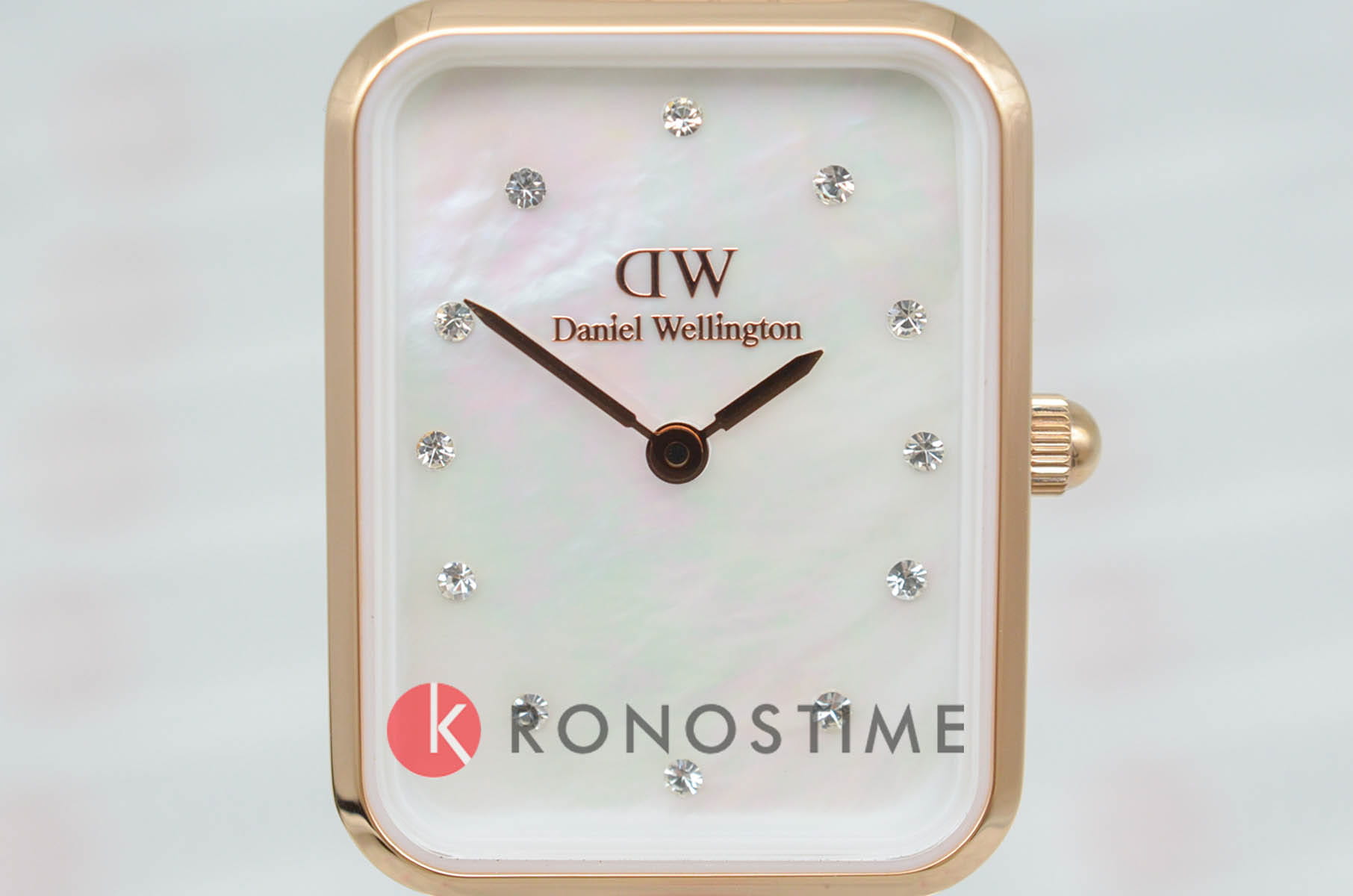 Daniel Wellington Quadro DW00100620 — элегантные женские часы с характерным скандинавским минимализмом. Прямоугольный корпус из нержавеющей стали с PVDPVDУльтратонкое покрытие наносится в технике вакуумного напыления, сочетает в себе нитрид титана особой прочности со слоем золота или оксида хрома. Несёт в себе декоративную или защитную функцию.-покрытием в цвете розового золота подчёркивает утончённость дизайна. Перламутровый циферблат украшен аккуратными метками-камнями, создающими изысканный блеск при каждом движении. Часы надёжно защищены минеральным стекломМинеральное стеклоМинеральное стекло представляет собой искусственно выращенный минерал кварца. Такое стекло отличается особой устойчивостью к повреждениям и царапинам. Уступает по некоторым качествам сапфировому стеклу., стойким к мелким повреждениям. Браслет из нержавеющей стали с утончённым плетением фиксируется с помощью застёжки «бабочка»Застёжка "бабочка"Такой вид застёжки дополняется предохранителями, помогающими избежать случайного раскрытия браслета. Обладают изящным исполнением. , которая обеспечивает комфорт и надёжность при носке. Модель работает на базе точного кварцевого механизма и подойдёт как для повседневных, так и для вечерних образов, подчеркивая индивидуальность своей обладательницы.