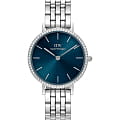 Женские наручные часы с минеральным стекломМинеральное стеклоМинеральное стекло представляет собой искусственно выращенный минерал кварца. Такое стекло отличается особой устойчивостью к повреждениям и царапинам. Уступает по некоторым качествам сапфировому стеклу. Daniel Wellington Petite DW00100664, кварцевый механизм с высокой точностью. Корпус часов изготовлен из стали. БезельБезельВнешний ободок, закрепляющий стекло. В спортивных часах так называется поворотное кольцо с делениями на циферблате, выполняет роль таймера – замеряет отрезки времени на шкале. Неподвижный безель – элемент декора. Однонаправленно вращающийся безель на дайверских часах позволяет фиксировать моменты погружения и выныривания на поверхность. украшен кристаллами Swarovski. Матовый циферблат украшен фирменным логотипом Daniel Wellington. Накладные метки в виде штрихов. Японский кварцевый механизм. Рифленая заводная головка. Класс водозащиты: 30 метров, позволит защитить корпус от случайных брызг или капель дождя. Стальной браслет на застёжке-бабочке с кнопкамиЗастёжка "бабочка"Такой вид застёжки дополняется предохранителями, помогающими избежать случайного раскрытия браслета. Обладают изящным исполнением. .