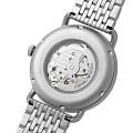 Сквозь прозрачное окошко на циферблате можно наблюдать за работой механизма часов В механизме 21 камень 12-ти и 24-х часовой формат времени Время в 24-х часовом формате отсчитывается на вращающемся диске и вынесено на отдельный циферблат Секунды отсчитываются на вращающемся диске и вынесены на отдельный циферблат Прозрачная задняя крышка Часовой механизм декорирован «женевскими волнами» (Cotes de Geneve) Ремешок из нержавеющей стали.