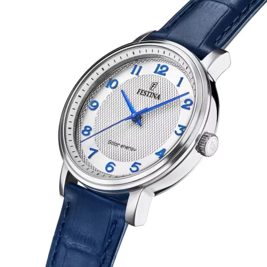 Кварцевый механизм с солнечной батарей. Минеральное стеклоМинеральное стеклоМинеральное стекло представляет собой искусственно выращенный минерал кварца. Такое стекло отличается особой устойчивостью к повреждениям и царапинам. Уступает по некоторым качествам сапфировому стеклу. устойчивое к появлению царапин, обладающее высокой прозрачностью. Циферблат декорирован узором. Класс водозащиты: 50 метров, позволит защитить корпус от случайных брызг или капель дождя. Корпус часов изготовлен из нержавеющей стали. Натуральной кожаный ремешок с классической застежкой, ширина браслета 20мм. Рифленая заводная головка.