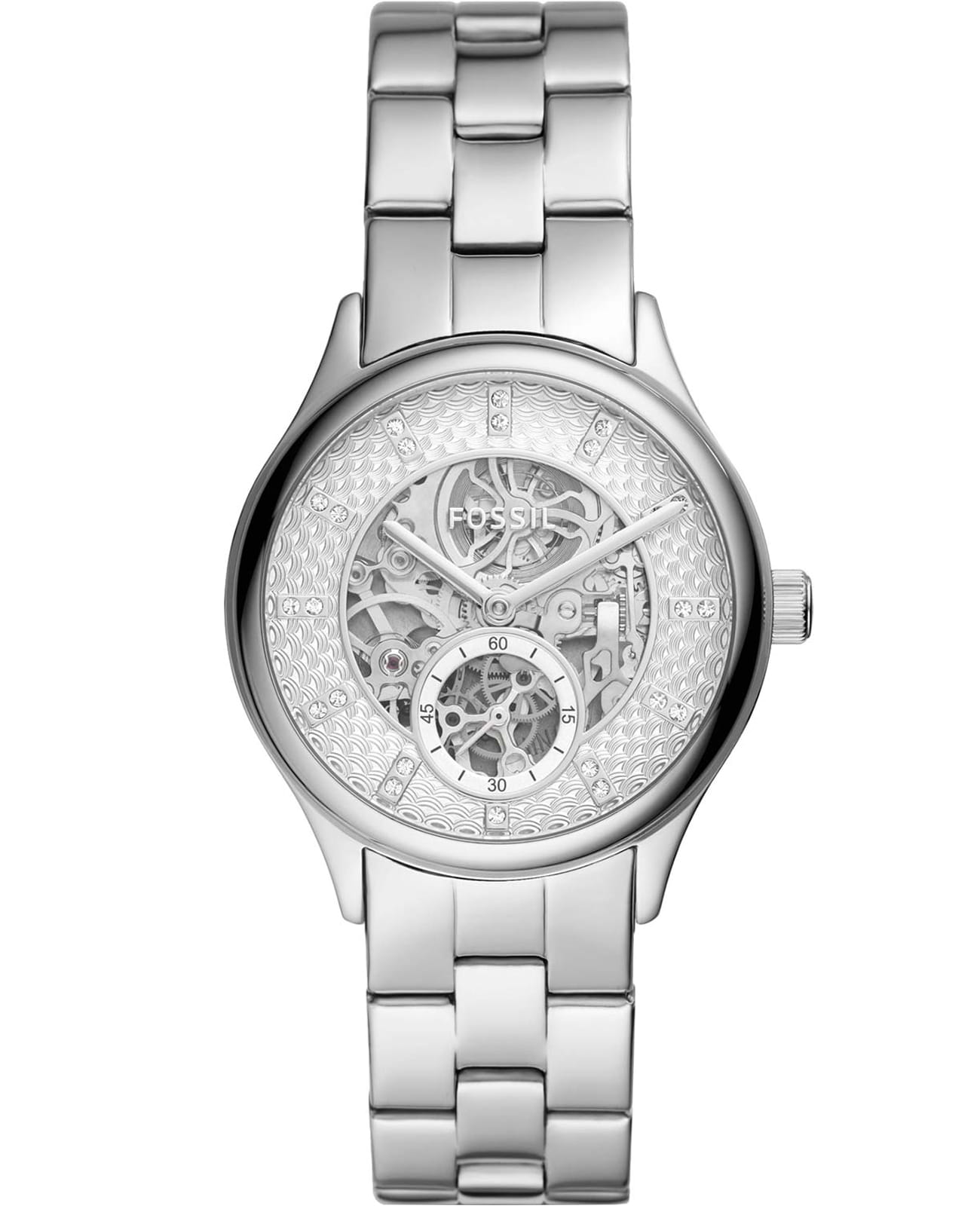 Женские американские часы Fossil Bannon BQ3649, механический механизм (автоматический калибр) с высокой точностью. Класс водозащиты: 50 метров, позволит защитить корпус от случайных брызг или капель дождя. Корпус часов изготовлен из стали, цвета.