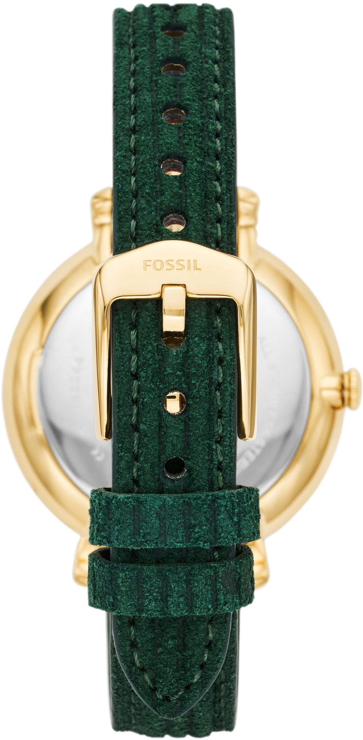 Американские женские наручные часы Fossil Jacqueline ES5244. Кварцевый механизм с высокой точностью. Класс водозащиты: 30 метров, позволит защитить корпус от случайных брызг или капель дождя. Индикатор дня и ночи на отдельном циферблате. Корпус часов изготовлен из стали с IP-покрытиемIP-покрытиеМетод ионного напыления. Демонстрирует повышенную устойчивость к истиранию, окислению и химическим веществам. Под воздействием высокого давления и температуры около 1500°C молекулы металла надёжно соединяются с частицами корпуса часов.. БезельБезельВнешний ободок, закрепляющий стекло. В спортивных часах так называется поворотное кольцо с делениями на циферблате, выполняет роль таймера – замеряет отрезки времени на шкале. Неподвижный безель – элемент декора. Однонаправленно вращающийся безель на дайверских часах позволяет фиксировать моменты погружения и выныривания на поверхность. украшен кристаллами.