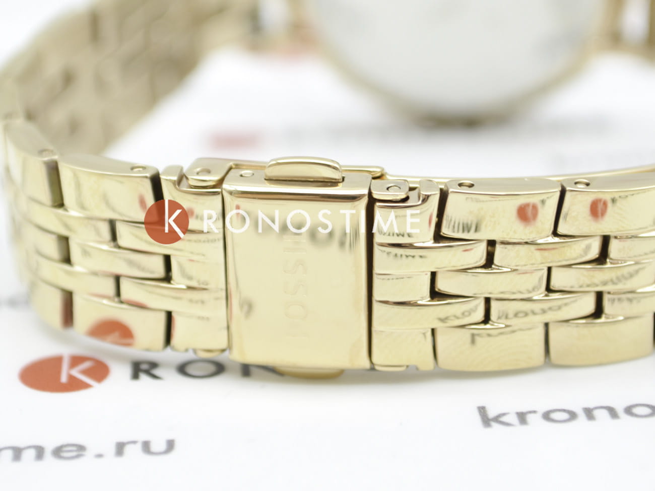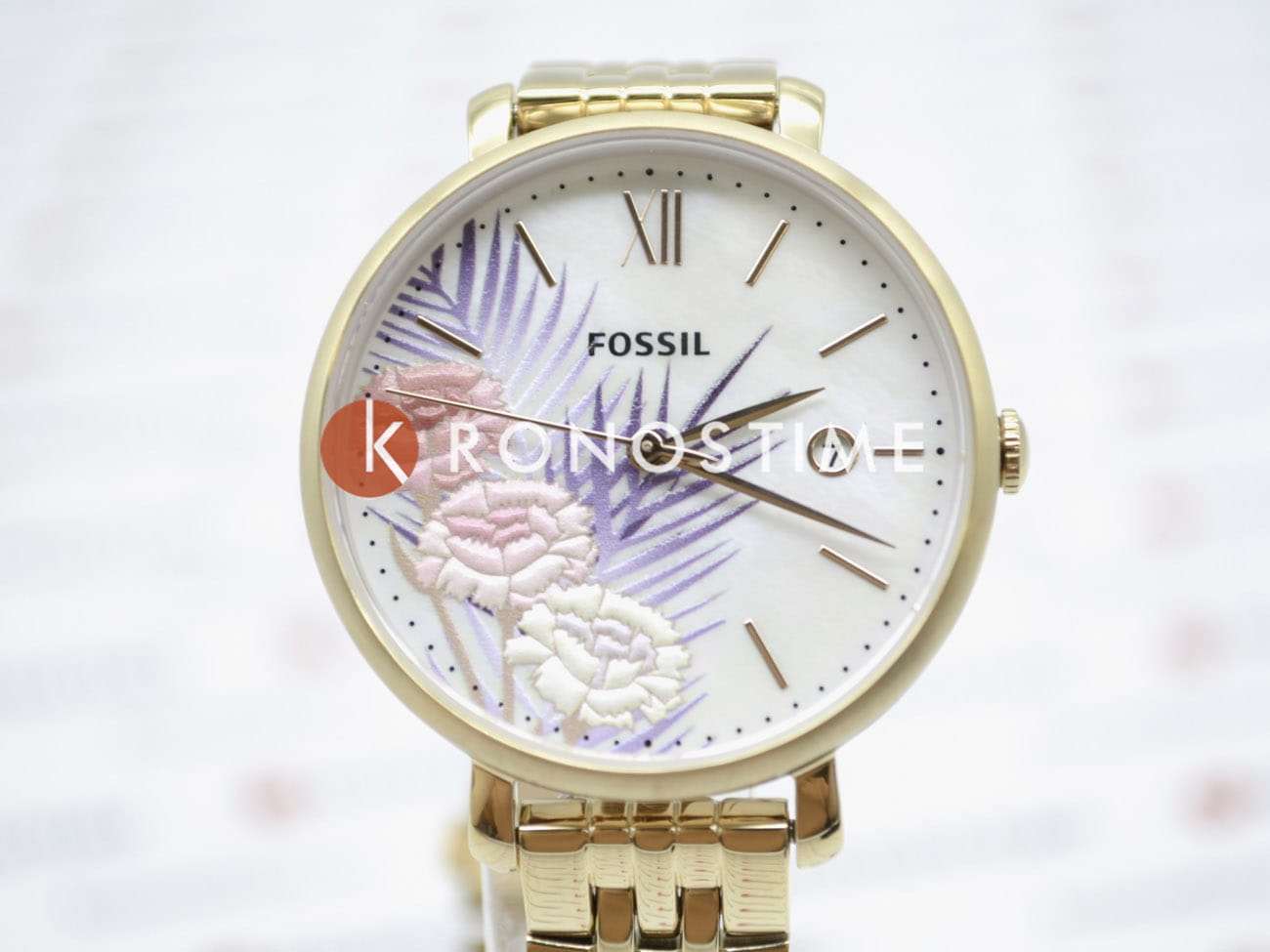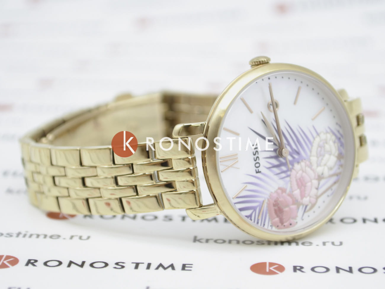 Женские американские часы с минеральным стекломМинеральное стеклоМинеральное стекло представляет собой искусственно выращенный минерал кварца. Такое стекло отличается особой устойчивостью к повреждениям и царапинам. Уступает по некоторым качествам сапфировому стеклу. Fossil Jacqueline ES5275, кварцевый механизм с высокой точностью. Корпус и браслет часов изготовлены из нержавеющей стали с IP-покрытиемIP-покрытиеМетод ионного напыления. Демонстрирует повышенную устойчивость к истиранию, окислению и химическим веществам. Под воздействием высокого давления и температуры около 1500°C молекулы металла надёжно соединяются с частицами корпуса часов.. Перламутровый циферблат украшен объемным изображением цветов. Метки в виде штрихов и римской цифры XII. Окошко даты находится в положении 3 часа. Рифленая заводная головка с защитой. Класс водозащиты: 30 метров, позволит защитить корпус от случайных брызг или капель дождя. Стальной браслет на раскладной застёжкеРаскладная застёжкаТакой тип застёжки используется только на браслетах из металла. Она никогда не раскрывается полностью, происходит разделение на 2 и более частей. Раскладывающая застёжка снизит вероятность потери часов к минимуму..