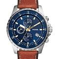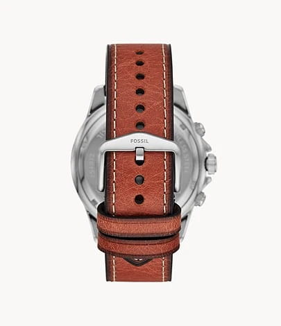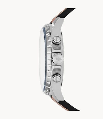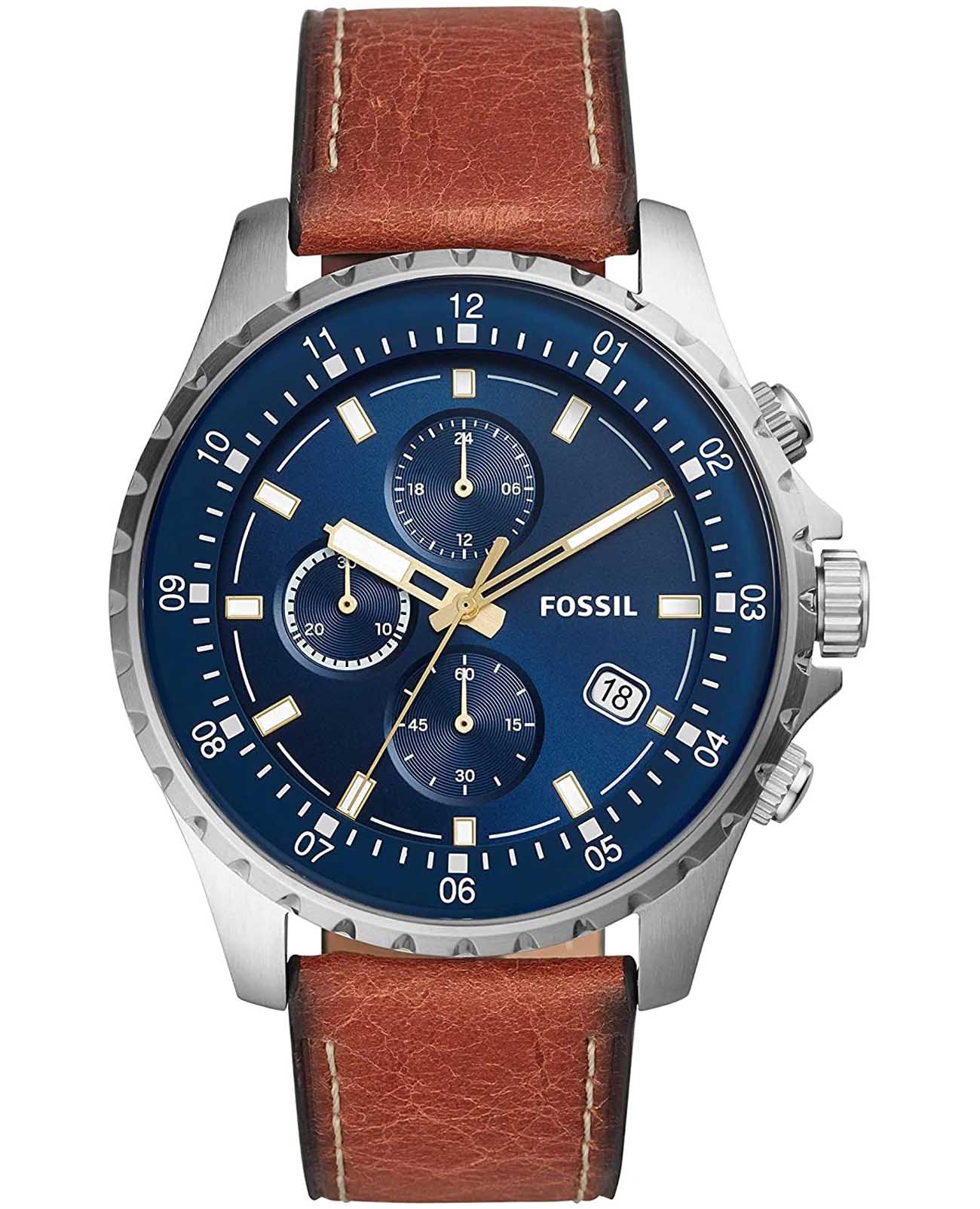 Мужские кварцевые часы Fossil Dillinger FS5675 — это стильный хронографХронографФункция позволяет измерять отрезки времени с особой точностью: часы, минуты, секунды. Верным признаком хронографа является наличие на циферблате 3 дополнительных окошек-счётчиков., сочетающий в себе элегантность и функциональность. Модель выполнена из нержавеющей стали серебристого цвета, диаметром 48 мм, что придаёт ей устойчивость к царапинам и благородный внешний вид. Циферблат защищен минеральным стекломМинеральное стеклоМинеральное стекло представляет собой искусственно выращенный минерал кварца. Такое стекло отличается особой устойчивостью к повреждениям и царапинам. Уступает по некоторым качествам сапфировому стеклу., устойчивым к повреждениям. Стрелки и метки имеют люминесцентное покрытиеЛюминесцентное покрытиеПозволяет считывать показания времени в темноте. Производители наносят на стрелки, часовые индексы, безель или поверхность циферблата светонакопительный состав, дающий холодное свечение., обеспечивающее отличную читаемость даже в условиях слабого освещения. Три дополнительных циферблата, отображение 24-часового формата времени. Окошко даты находится в положении 4 часа. БезельБезельВнешний ободок, закрепляющий стекло. В спортивных часах так называется поворотное кольцо с делениями на циферблате, выполняет роль таймера – замеряет отрезки времени на шкале. Неподвижный безель – элемент декора. Однонаправленно вращающийся безель на дайверских часах позволяет фиксировать моменты погружения и выныривания на поверхность. с PVD-покрытиемPVDУльтратонкое покрытие наносится в технике вакуумного напыления, сочетает в себе нитрид титана особой прочности со слоем золота или оксида хрома. Несёт в себе декоративную или защитную функцию. синего цвета. Часы оснащены кварцевым механизмом, обеспечивающим точную работу и минимальное обслуживание. Водонепроницаемость 50 метров позволит защитить корпус от случайных брызг или капель дождя. Браслет из кожи оснащён стандартной застёжкой, обеспечивающий комфорт и надёжную фиксацию на запястье. Эти часы станут универсальным аксессуаром для тех, кто ценит сочетание стиля, функциональности и надёжности — идеальный выбор для повседневной носки и активного образа жизни.