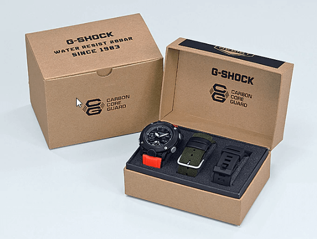 В наручных часах этой модели реализована технология Carbon Core Guard Сверхлегкий и ультрапрочный корпус часов выполнен из полиуретана и армирован углеродом, циферблат часов защищает закаленное минеральное стекло