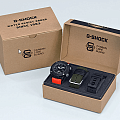 Данная модель имеет фирменную водонепроницаемость до 200 метров, как и у всех G-Shock Дополнительно имеются функции таймера, секундомера и мирового времени Для удобства использования предусмотрена двойная подсветка и возможность складывания стрелок для считывания текста с дисплея В комплекте с часами вы найдете 2 дополнительных ремешка: черный полимерный и текстильный цвета хаки