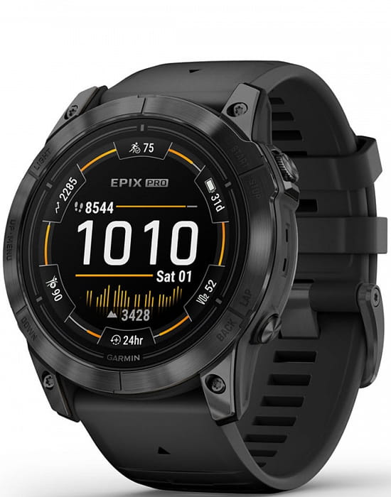 Умные многофункциональные мужские часы Garmin Epix Pro (Gen 2) Standard Edition 010-02804-21, электронный механизм с высокой точностью. Класс водозащиты: 100 метров, позволит плавать, нырять и заниматься другими водными видами спорта. Стальной корпус. Циферблат с сапфировым стекломСапфировое стеклоПрочный и надёжный материал из кристалла сапфира синтетического происхождения, характеризующийся особой твёрдостью и устойчивостью к царапинам и повреждениям.. Экран с светодиодной подсветкойСветодиодная подсветкаСветодиодная или LED-подсветка обеспечивает появление яркого холодного свечения за счёт LED-элементов - маленьких лампочек. Они потребляют минимальное количество энергии, чаще всего можно встретить 1 светодиод, в нижней части циферблата.. Силиконовый ремешок на стандартной застёжке. Безель из стали с PVD-покрытиемPVDУльтратонкое покрытие наносится в технике вакуумного напыления, сочетает в себе нитрид титана особой прочности со слоем золота или оксида хрома. Несёт в себе декоративную или защитную функцию..