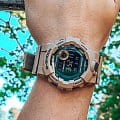 Это не просто стильный и практичный аксессуар, модель песочного цвета является идеальным помощником в правильной организации тренировок. Часы для фитнеса и бега оснащены шагомером, измеряющим их в количестве от 0 до 999999, многофункциональным таймером, секундомером с памятью на 200 результатов. С помощью технологии BluetoothBluetoothСовременная технология, позволяющая синхронизировать часы с телефоном и переносить данные. Часы с Bluetooth расширяют возможности вашего смартфона и делают его использование ещё более удобным. данные о физической активности могут передаваться и анализироваться в вашем смартфоне, для этого было разработано приложение G-Shock Connected Phone. Кварцевый механизм японского производства. Батарейка рассчитана на 3 года работы. Ударопрочный корпусУдаропрочный корпусМеханизм заключён в корпус, выполненный из современных материалов, устойчивых к ударам, механическим повреждениям и падению с высоты: инновационный пластик, карбон, нержавеющая сталь, титан. из полимерного материала. Минеральное стекло. Водостойкость до 20 бар. Циферблат со светодиодной подсветкойСветодиодная подсветкаСветодиодная или LED-подсветка обеспечивает появление яркого холодного свечения за счёт LED-элементов - маленьких лампочек. Они потребляют минимальное количество энергии, чаще всего можно встретить 1 светодиод, в нижней части циферблата., стрелки с люминесцентным покрытиемЛюминесцентное покрытиеПозволяет считывать показания времени в темноте. Производители наносят на стрелки, часовые индексы, безель или поверхность циферблата светонакопительный состав, дающий холодное свечение.. Будильник, мировое времяМировое время Полезное часовое усложнение, отображающее время в основных городах и известных областях по всему миру, оно связано с часовыми поясами, удобно для путешественников и бизнесменов. , календарь до 2099 года, функция поиска телефона, хронографХронографФункция позволяет измерять отрезки времени с особой точностью: часы, минуты, секунды. Верным признаком хронографа является наличие на циферблате 3 дополнительных окошек-счётчиков.. Габариты: 54,1 x 48,6 x 15,5 мм.