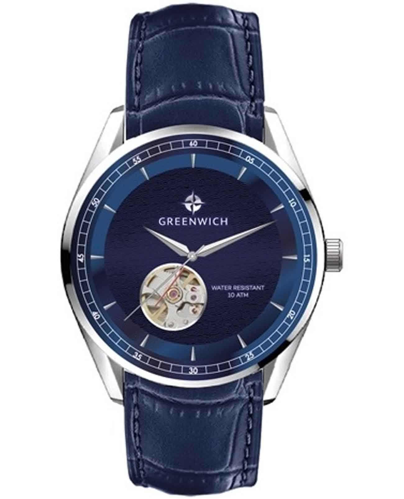 Мужские механические часы с минеральным стекломМинеральное стеклоМинеральное стекло представляет собой искусственно выращенный минерал кварца. Такое стекло отличается особой устойчивостью к повреждениям и царапинам. Уступает по некоторым качествам сапфировому стеклу. Greenwich GW 075.16.36. Корпус часов изготовлен из стали. Класс водозащиты: 100 метров, позволит плавать, нырять и заниматься другими водными видами спорта. Кожаный ремешок на стандартной застёжке.