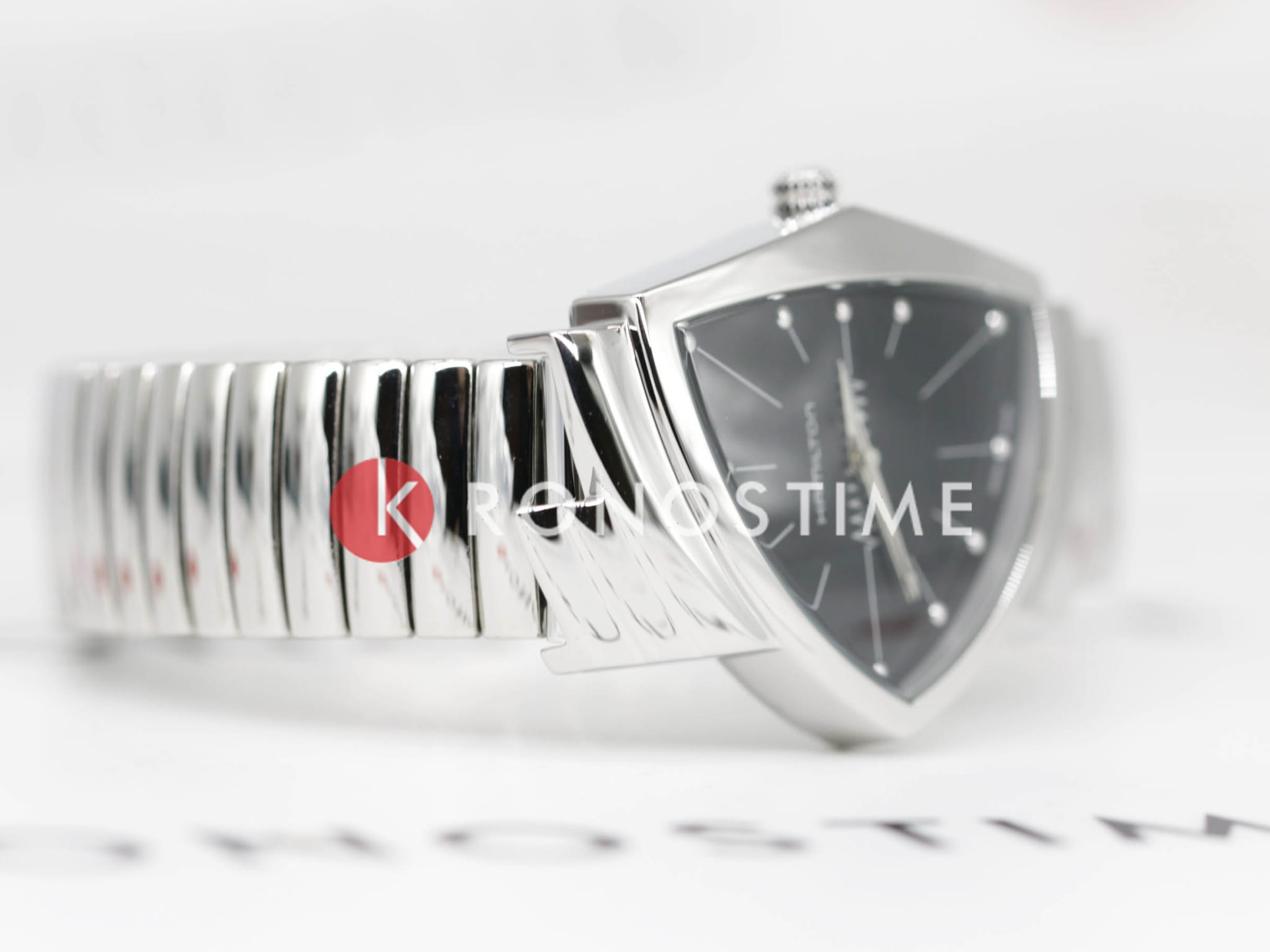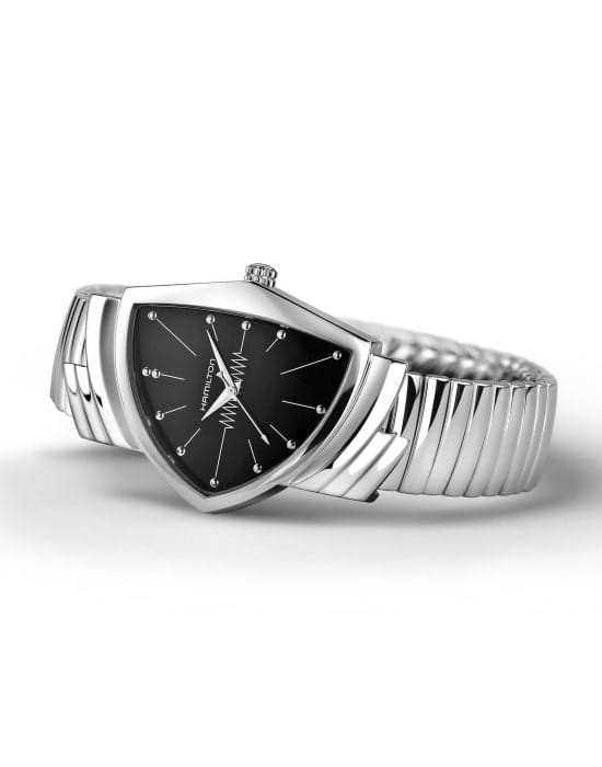 Модель Hamilton Ventura Quartz H24411232 — культовые часы с неподражаемым треугольным корпусом из нержавеющей стали, сохранившие свой бунтарский дух спустя более 60 лет. Черный циферблат украшен серебристым зигзагообразным узором, символизирующим электрический импульс, а серебристые стрелки и часовые метки создают стильный контраст. Минеральное стеклоМинеральное стеклоМинеральное стекло представляет собой искусственно выращенный минерал кварца. Такое стекло отличается особой устойчивостью к повреждениям и царапинам. Уступает по некоторым качествам сапфировому стеклу. защищает дисплей от повреждений, сохраняя идеальный внешний вид. Часы оснащены точным кварцевым механизмом калибра F05.111, обеспечивающим надежность работы. Браслет из нержавеющей стали гарантирует удобство и комфорт при ношении. Водонепроницаемость до 50 метров защищает механизм от случайных брызг и дождя. Hamilton Ventura H24411232 — смелый выбор для тех, кто ценит оригинальный дизайн и легендарную историю.