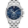 Мужские швейцарские часы c хронографомХронографФункция позволяет измерять отрезки времени с особой точностью: часы, минуты, секунды. Верным признаком хронографа является наличие на циферблате 3 дополнительных окошек-счётчиков. Hamilton Jazzmaster Chrono Quartz H32612141, кварцевый механизм с высокой точностью. Сапфировое стеклоСапфировое стеклоПрочный и надёжный материал из кристалла сапфира синтетического происхождения, характеризующийся особой твёрдостью и устойчивостью к царапинам и повреждениям. устойчивое к появлению царапин, обладающее высокой прозрачностью. Класс водозащиты: 100 метров, позволит плавать, нырять и заниматься другими водными видами спорта. Корпус часов изготовлен из стали. Стальной браслет на раскладной застёжкеРаскладная застёжкаТакой тип застёжки используется только на браслетах из металла. Она никогда не раскрывается полностью, происходит разделение на 2 и более частей. Раскладывающая застёжка снизит вероятность потери часов к минимуму.. Стрелки и метки с люминесцентным покрытиемЛюминесцентное покрытиеПозволяет считывать показания времени в темноте. Производители наносят на стрелки, часовые индексы, безель или поверхность циферблата светонакопительный состав, дающий холодное свечение..