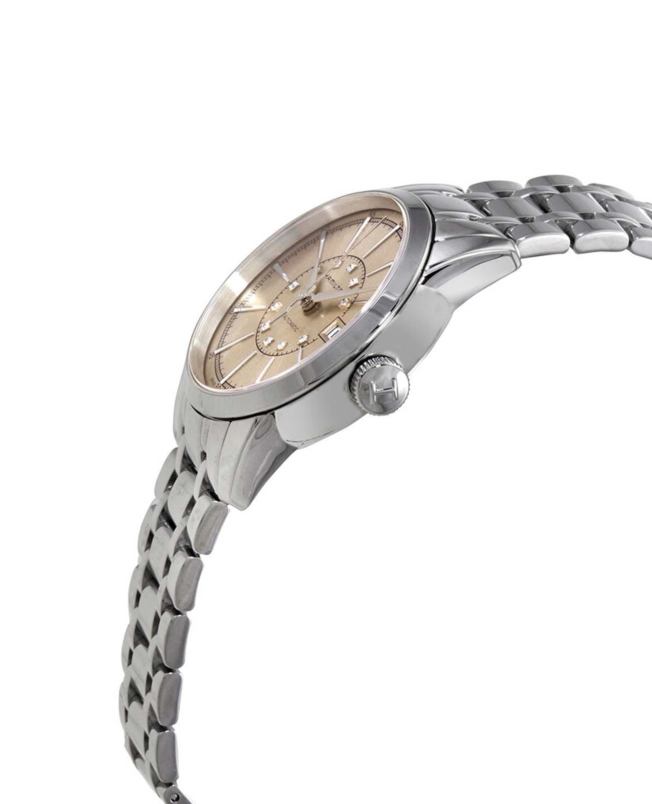 Женские наручные часы Hamilton American Classic RailRoad Lady Auto H40405121 с автоматическим механизмом. Корпус и браслет часов изготовлены из нержавеющей стали. Сапфировое стеклоСапфировое стеклоПрочный и надёжный материал из кристалла сапфира синтетического происхождения, характеризующийся особой твёрдостью и устойчивостью к царапинам и повреждениям. устойчивое к мелким механическим повреждениям. Стальной браслет на застёжке-бабочке с кнопкамиЗастёжка "бабочка"Такой вид застёжки дополняется предохранителями, помогающими избежать случайного раскрытия браслета. Обладают изящным исполнением. . Циферблат часов инкрустирован бриллиантами. Окошко даты находится в положении 3 часа.