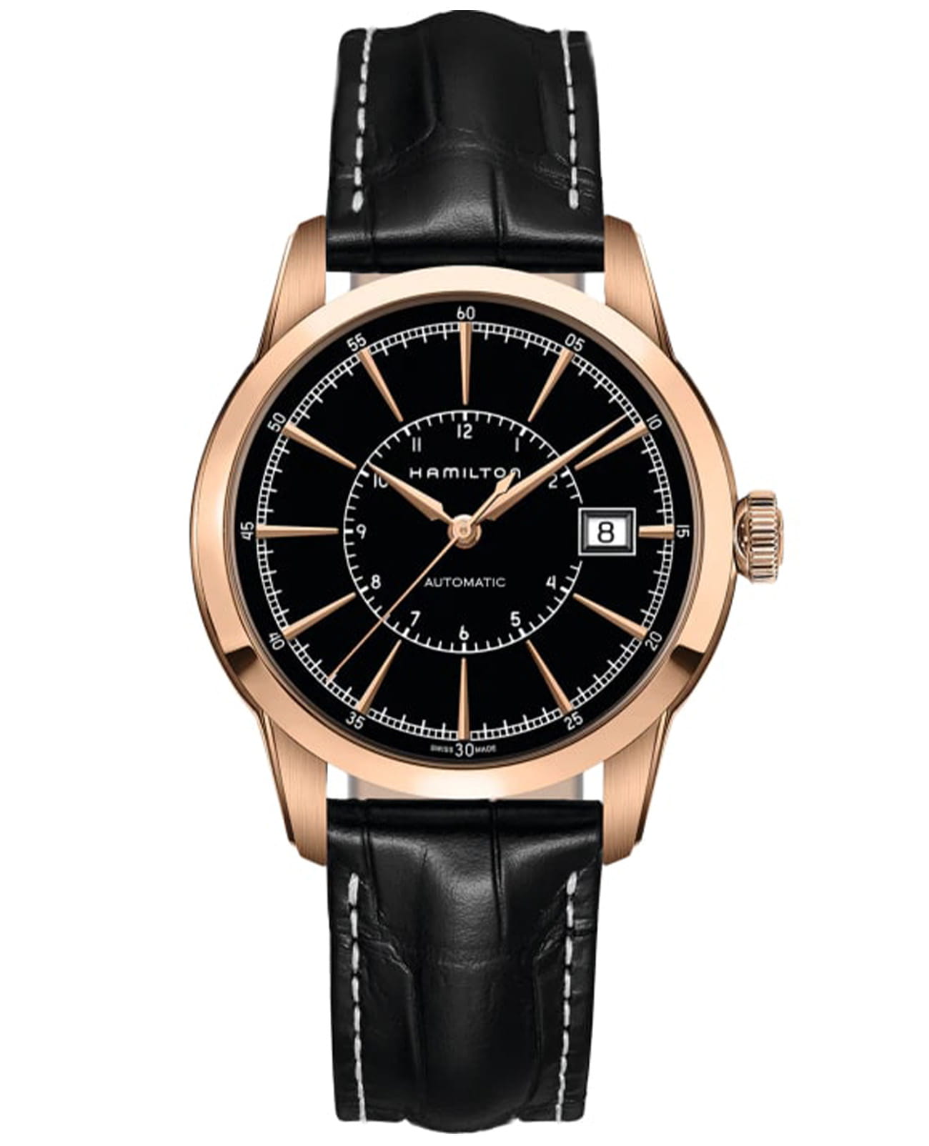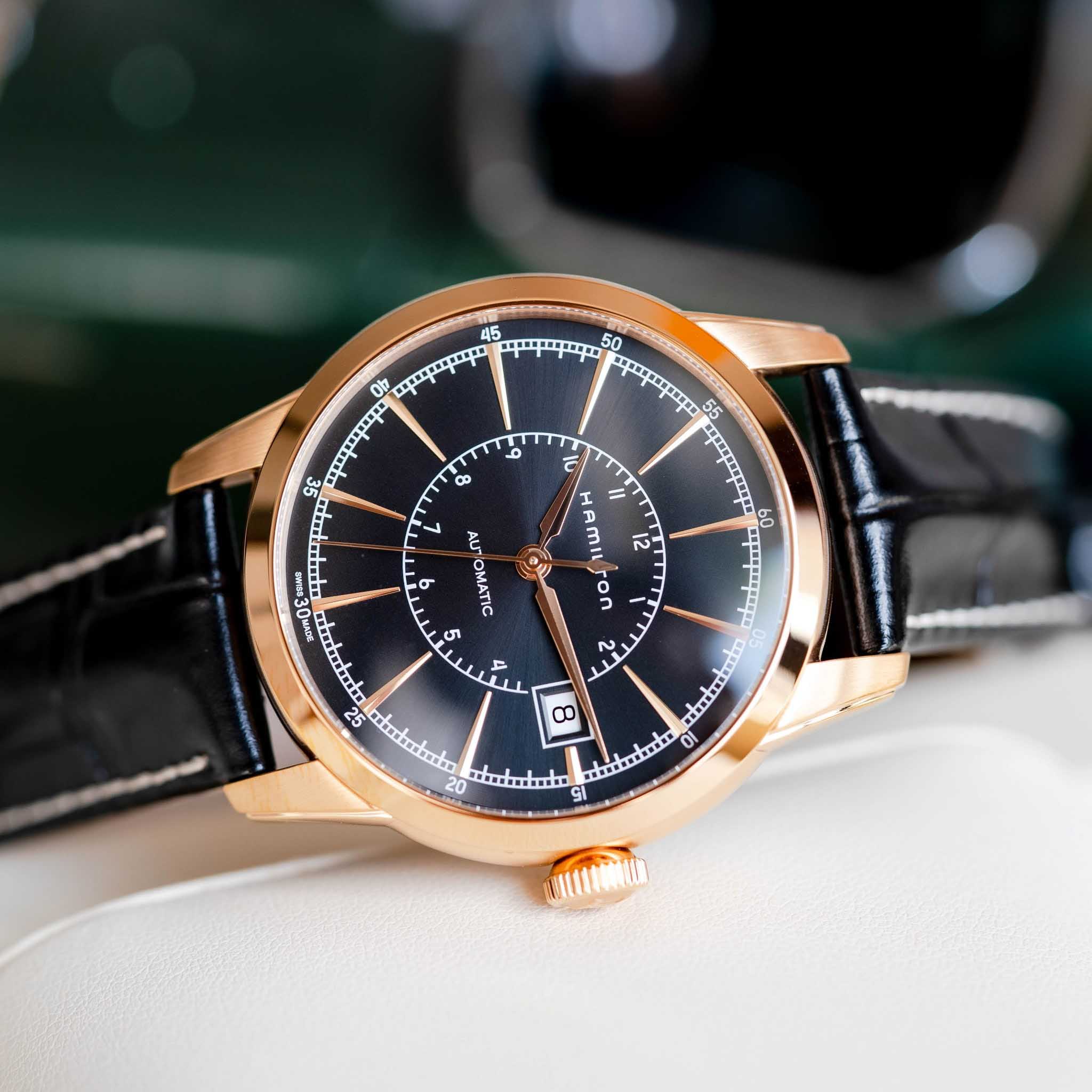 Мужские механические швейцарские часы с прозрачной задней крышкой Hamilton American Classic Railroad Auto H40505731, механический механизм (автоматический калибр) с высокой точностью. Сапфировое стеклоСапфировое стеклоПрочный и надёжный материал из кристалла сапфира синтетического происхождения, характеризующийся особой твёрдостью и устойчивостью к царапинам и повреждениям. устойчивое к появлению царапин, обладающее высокой прозрачностью. Класс водозащиты: 50 метров, позволит защитить корпус от случайных брызг или капель дождя. Корпус часов изготовлен из стали с PVD-покрытиемPVDУльтратонкое покрытие наносится в технике вакуумного напыления, сочетает в себе нитрид титана особой прочности со слоем золота или оксида хрома. Несёт в себе декоративную или защитную функцию.. Кожаный ремешок с раскладной застёжкойРаскладная застёжкаТакой тип застёжки используется только на браслетах из металла. Она никогда не раскрывается полностью, происходит разделение на 2 и более частей. Раскладывающая застёжка снизит вероятность потери часов к минимуму.. Окошко даты находится в положении 3 часа.