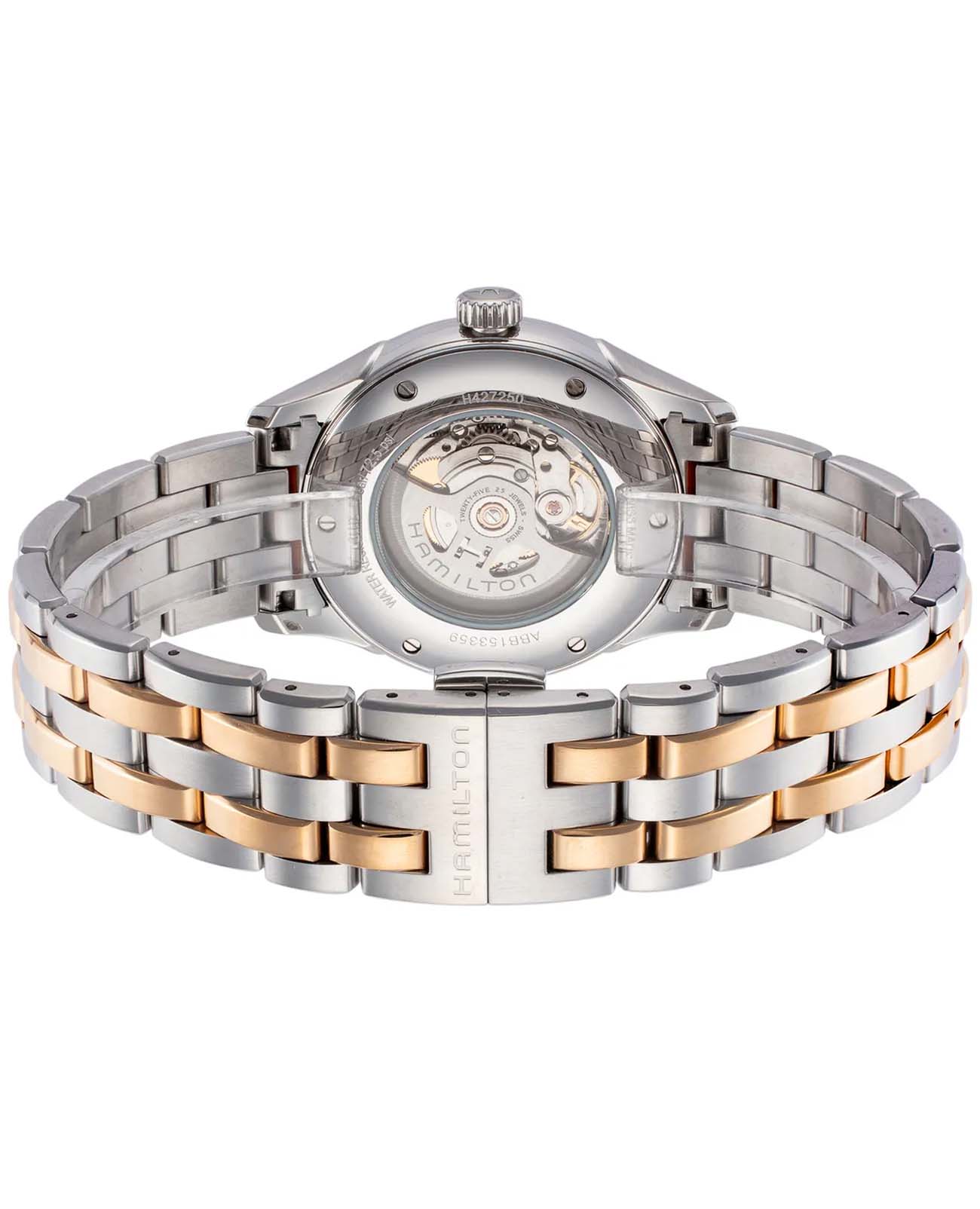 Мужские наручные часы Hamilton Jazzmaster Viewmatic Auto H42725151 с надёжным автоматическим механизмом. Корпус часов изготовлен из нержавеющей стали. Браслет с частичным PVD-покрытиемPVDУльтратонкое покрытие наносится в технике вакуумного напыления, сочетает в себе нитрид титана особой прочности со слоем золота или оксида хрома. Несёт в себе декоративную или защитную функцию.. Сапфировое стеклоСапфировое стеклоПрочный и надёжный материал из кристалла сапфира синтетического происхождения, характеризующийся особой твёрдостью и устойчивостью к царапинам и повреждениям. с антибликовым покрытием. Стальной браслет на застёжке-бабочке с кнопкамиЗастёжка "бабочка"Такой вид застёжки дополняется предохранителями, помогающими избежать случайного раскрытия браслета. Обладают изящным исполнением. . Стрелки и метки с люминесцентным покрытиемЛюминесцентное покрытиеПозволяет считывать показания времени в темноте. Производители наносят на стрелки, часовые индексы, безель или поверхность циферблата светонакопительный состав, дающий холодное свечение.. Окошко даты находится в положении 3 часа. Класс водозащиты: 50 метров, позволит защитить корпус от случайных брызг или капель дождя.