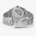 Hamilton Khaki Field Quartz H69401110 — компактные и универсальные часы в классическом военном стиле, с акцентом на надёжность и практичность. Корпус диаметром 38 мм выполнен из нержавеющей стали с сатинированной поверхностью. Он лёгкий, удобный и идеально подходит для запястий любого размера. Циферблат защищён сапфировым стекломСапфировое стеклоПрочный и надёжный материал из кристалла сапфира синтетического происхождения, характеризующийся особой твёрдостью и устойчивостью к царапинам и повреждениям. с антибликовым покрытиемАнтибликовое покрытиеСлой оксида металла в 0,13-0,3 микрон, благодаря которому стекло часов не бликует и не отражает свет. Антибликовое покрытие уменьшает отражение света в 10 раз, обеспечивая отличную читаемость показателей циферблата., устойчивым к царапинам и бликам. Циферблат оформлен в классическом армейском стиле: крупные арабские цифры, 24-часовая шкала по внутреннему кругу, стрелки и метки с люминесцентным покрытиемЛюминесцентное покрытиеПозволяет считывать показания времени в темноте. Производители наносят на стрелки, часовые индексы, безель или поверхность циферблата светонакопительный состав, дающий холодное свечение. для удобного считывания в темноте. Внутри установлен швейцарский кварцевый калибр ETA F05.105mh2 с функцией EOL-индикацииEOLПредставляет собой систему, уведомляющую владельца часов о необходимости замены элемента питания. За 2 недели до полного разряда батарейки секундная стрелка перестаёт ходить чётко и начинает перепрыгивать на 3-4 деления. — предупреждением о скором разряде батареи. Модель укомплектована браслетом из нержавеющей стали с раскладной застёжкойРаскладная застёжкаТакой тип застёжки используется только на браслетах из металла. Она никогда не раскрывается полностью, происходит разделение на 2 и более частей. Раскладывающая застёжка снизит вероятность потери часов к минимуму., обеспечивающей надёжную посадку. Водонепроницаемость 50 метров делает часы устойчивыми к брызгам и дождю, идеально подходящими для повседневного ношения. Khaki Field Quartz — надёжный выбор для тех, кто ценит простоту, точность и долговечность.