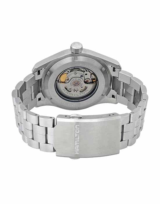 Мужские механические швейцарские часы Hamilton Jazzmaster Open Heart Auto H70515137. Автоматический механизм с высокой точностью. Сапфировое стеклоСапфировое стеклоПрочный и надёжный материал из кристалла сапфира синтетического происхождения, характеризующийся особой твёрдостью и устойчивостью к царапинам и повреждениям. устойчивое к появлению царапин, обладающее высокой прозрачностью. Класс водозащиты: 100 метров, позволит заниматься плаванием и другими водными видами спорта. Корпус часов изготовлен из нержавеющей стали. Стальной браслет на раскладной застёжкеРаскладная застёжкаТакой тип застёжки используется только на браслетах из металла. Она никогда не раскрывается полностью, происходит разделение на 2 и более частей. Раскладывающая застёжка снизит вероятность потери часов к минимуму..