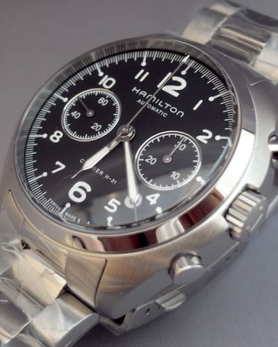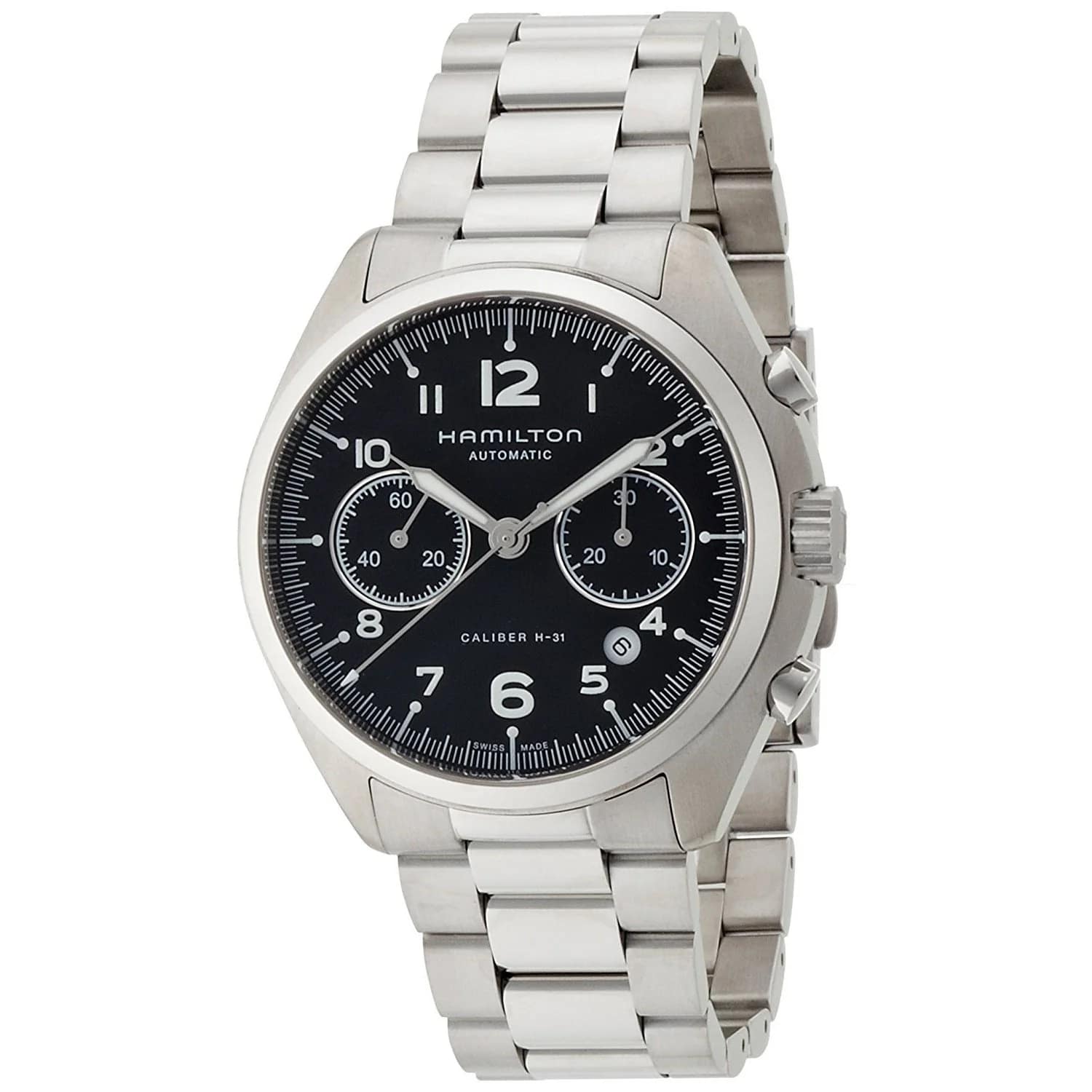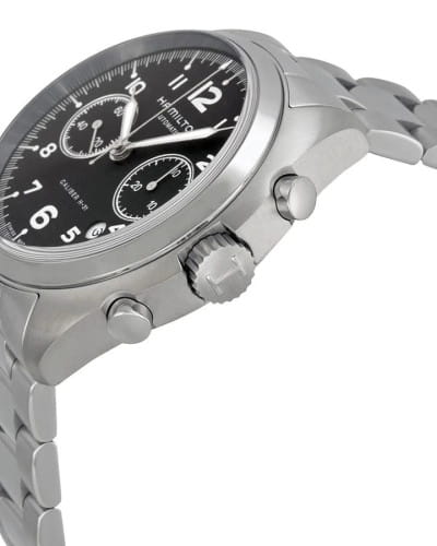 Выдержанные в стиле моделей, создаваемых в 1970-е годы для британских ВВС, часы Khaki Pilot Pioneer приводятся в действие с помощью современных технологий. Современные материалы и испытанный на практике дизайн позволили создать часы с поразительной индикацией показаний. Мужские механические швейцарские часы-хронографХронографФункция позволяет измерять отрезки времени с особой точностью: часы, минуты, секунды. Верным признаком хронографа является наличие на циферблате 3 дополнительных окошек-счётчиков. с секундомеромСекундомерСекундоме́р — прибор, способный измерять интервалы времени с точностью до долей секунды. и автоматическим подзаводом Hamilton Khaki Aviation H76416135, механический механизм (автоматический калибр) с высокой точностью. Сапфировое стеклоСапфировое стеклоПрочный и надёжный материал из кристалла сапфира синтетического происхождения, характеризующийся особой твёрдостью и устойчивостью к царапинам и повреждениям. устойчивое к появлению царапин, обладающее высокой прозрачностью. Класс водозащиты: 100 метров, позволит плавать, нырять и заниматься другими водными видами спорта. Корпус часов изготовлен из стали. Стальной браслет на раскладной застёжкеРаскладная застёжкаТакой тип застёжки используется только на браслетах из металла. Она никогда не раскрывается полностью, происходит разделение на 2 и более частей. Раскладывающая застёжка снизит вероятность потери часов к минимуму.. Прозрачная задняя крышка. Модель Auto Chrono оснащена новейшим механизмом хронографаХронографФункция позволяет измерять отрезки времени с особой точностью: часы, минуты, секунды. Верным признаком хронографа является наличие на циферблате 3 дополнительных окошек-счётчиков. H-31. H-31 - это мощный автоматический механизм хронографаХронографФункция позволяет измерять отрезки времени с особой точностью: часы, минуты, секунды. Верным признаком хронографа является наличие на циферблате 3 дополнительных окошек-счётчиков. с увеличенным 60-часовым запасом хода, что делает его идеальным для самых спортивных моделей. С декорированием «H» на инерционном мосту невозможно ошибиться в создателе данного калибра.